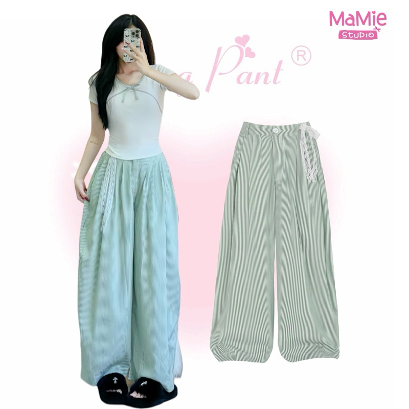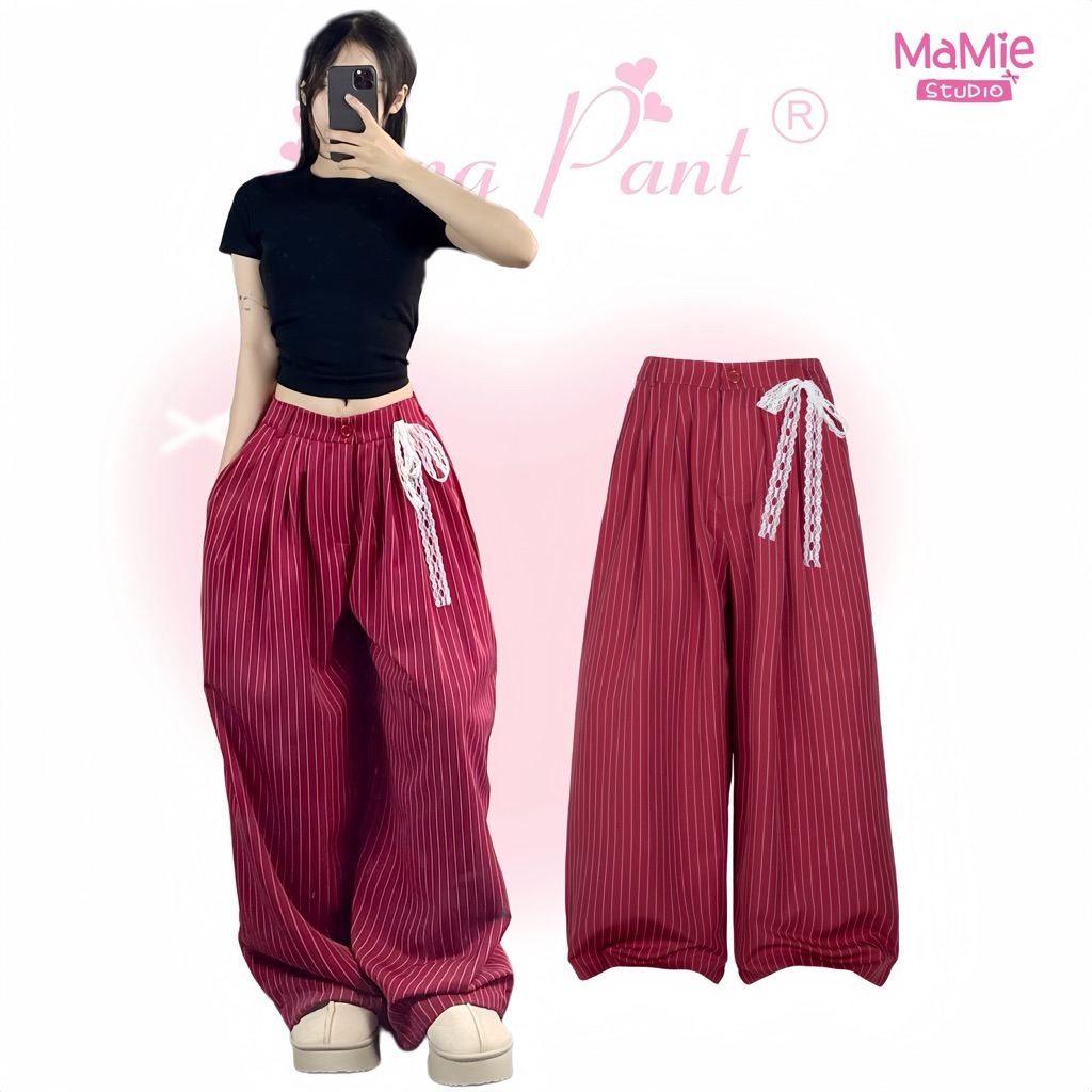 MaMie Studio- Striped Pants tặng dây ren - Quần dài kẻ sọc form harem unisex vải oxford premium mềm mỏng nhẹ, có lưng th