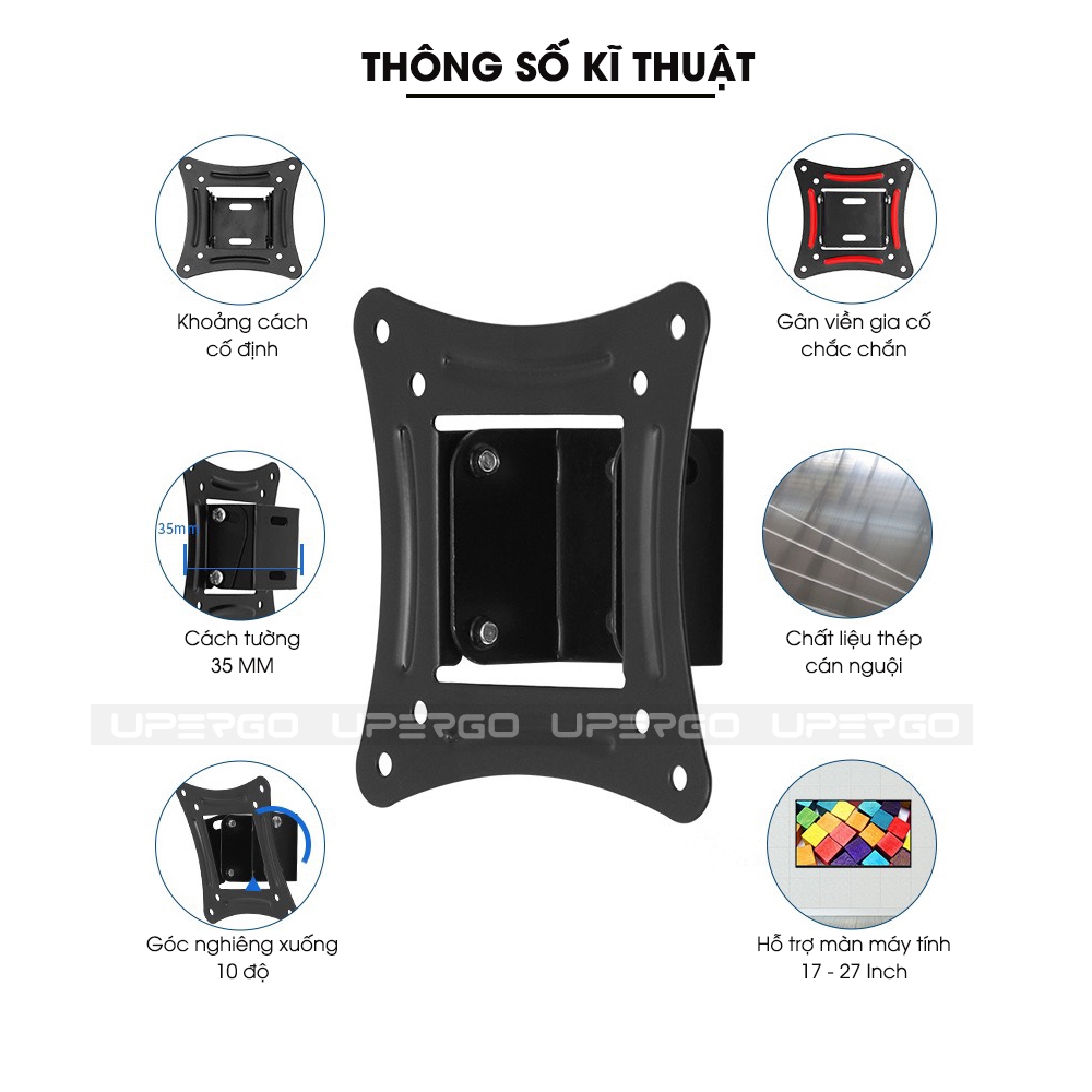 Giá Treo Màn Hình 17 - 27 - Tùy Chỉnh Góc Nghiêng Xuống 10 Độ Model C12 / Cách Tường 3,5 Cm