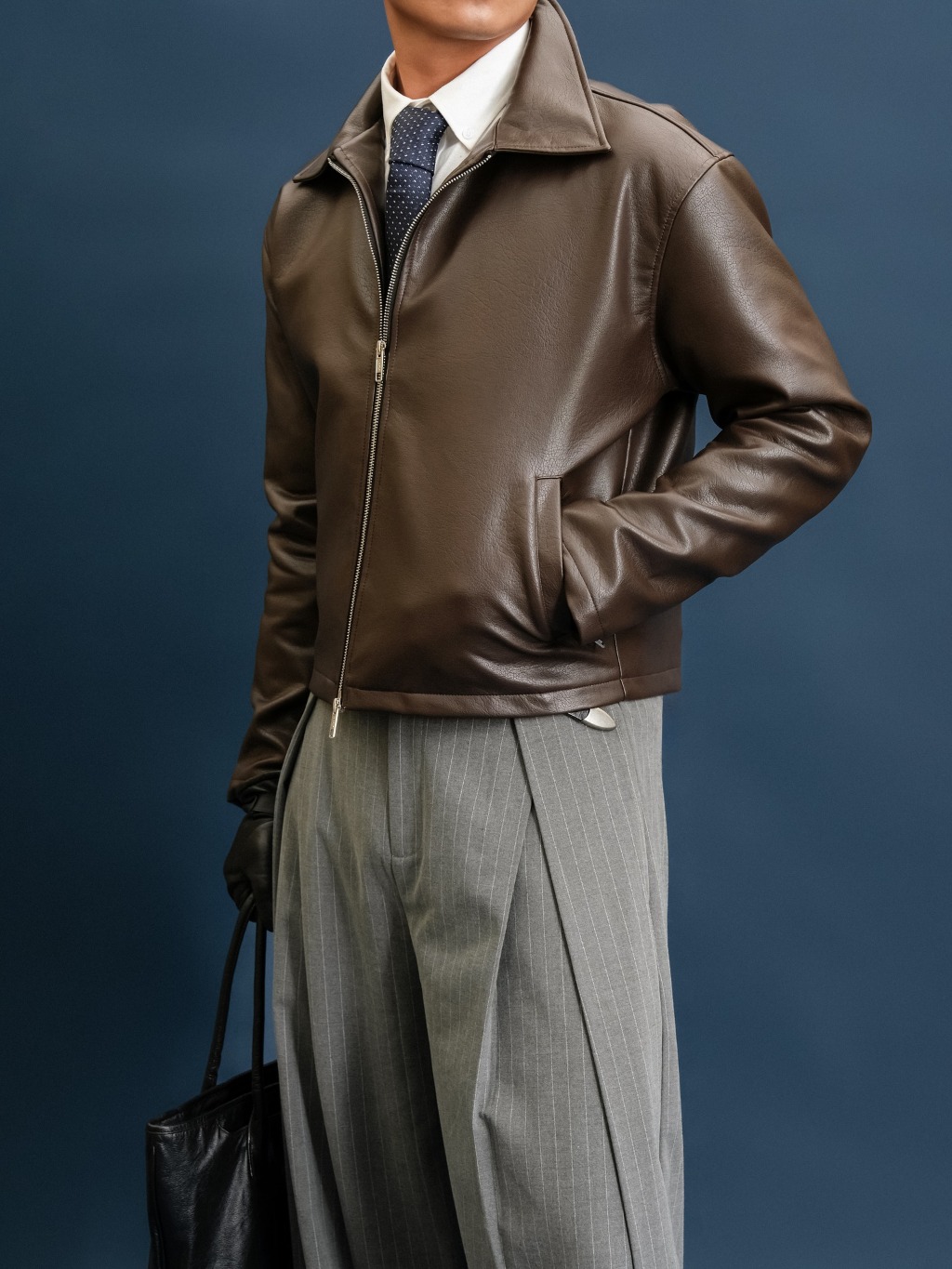 Áo khoác da form crop tôn dáng, chất liệu cao cấp, thương hiệu B Brown