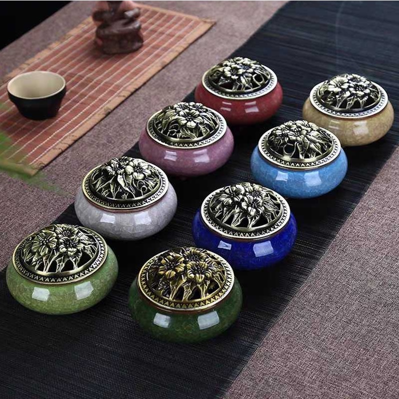 Xông Trầm Bằng Sứ Nhiều Hình Mẫu Hoa Văn Thiết Kế Đa Dạng Lư đốt trầm men rạn ngọc loại 1, Lư xông trầm cao cấp - Mẫu đẹ