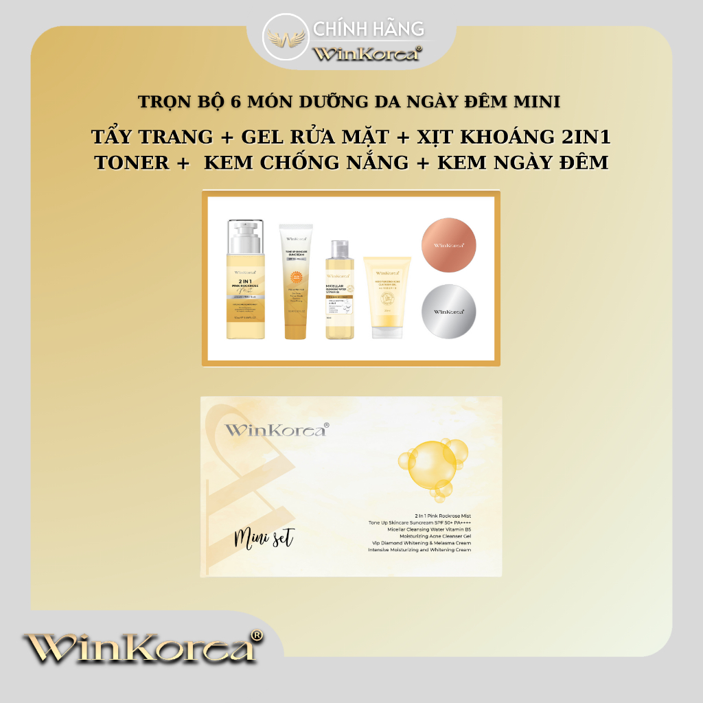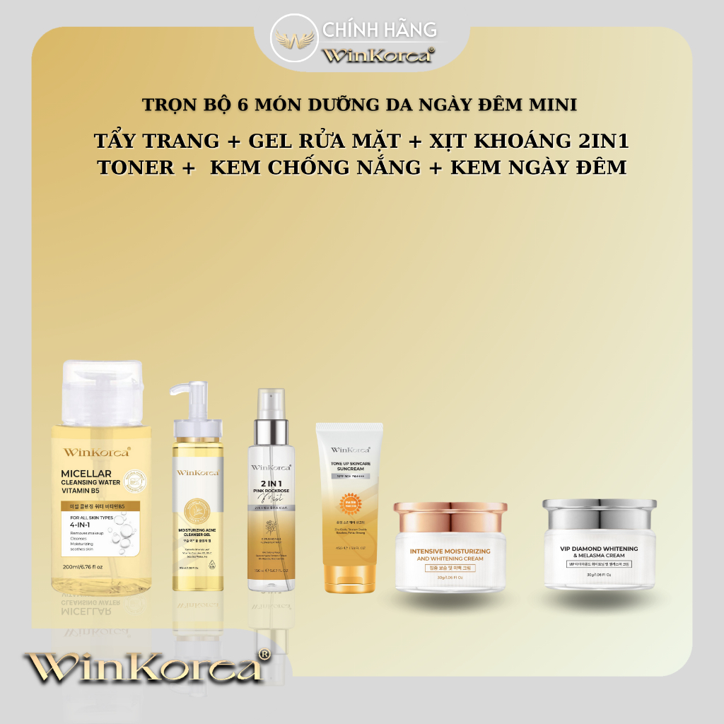 TRỌN BỘ DƯỠNG DA KEM NGÀY ĐÊM + TẨY TRANG + SỬA RỬA MẶT + XỊT KHOÁNG 2IN1 + KEM CHỐNG NẮNG Thương Hiệu: WinKorea