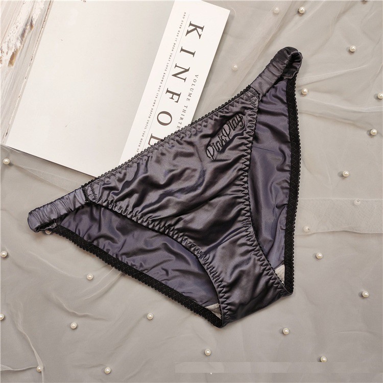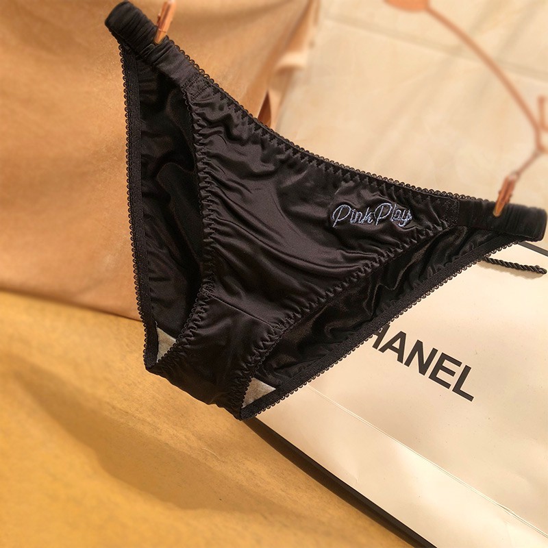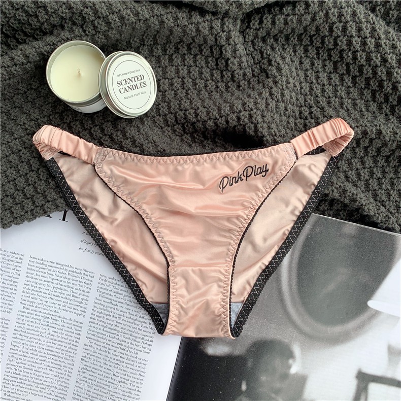 Quần lót lụa tam giác chữ thêu Pink Play sexy cao cấp