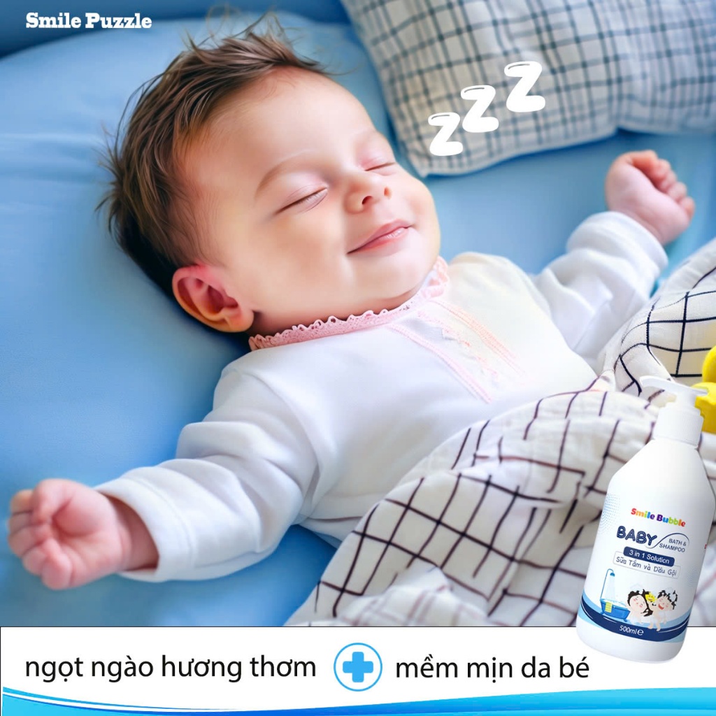 XẢ KHO - [DATE 09/2026] -Sữa Tắm Gội Toàn Thân Chai 500ml Cho Bé Dưỡng Ẩm Không Cay Mắt 3in1 Hương Đào Smile Bubble