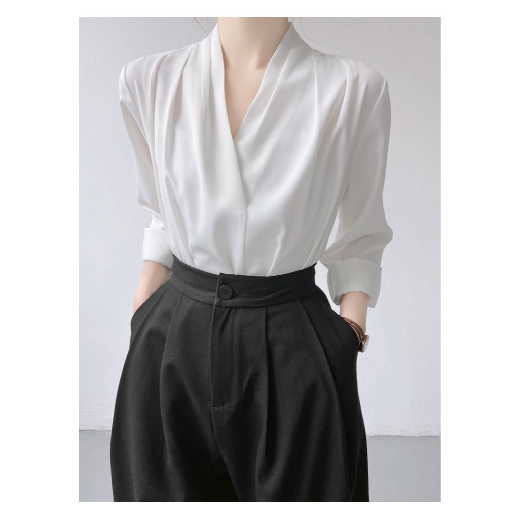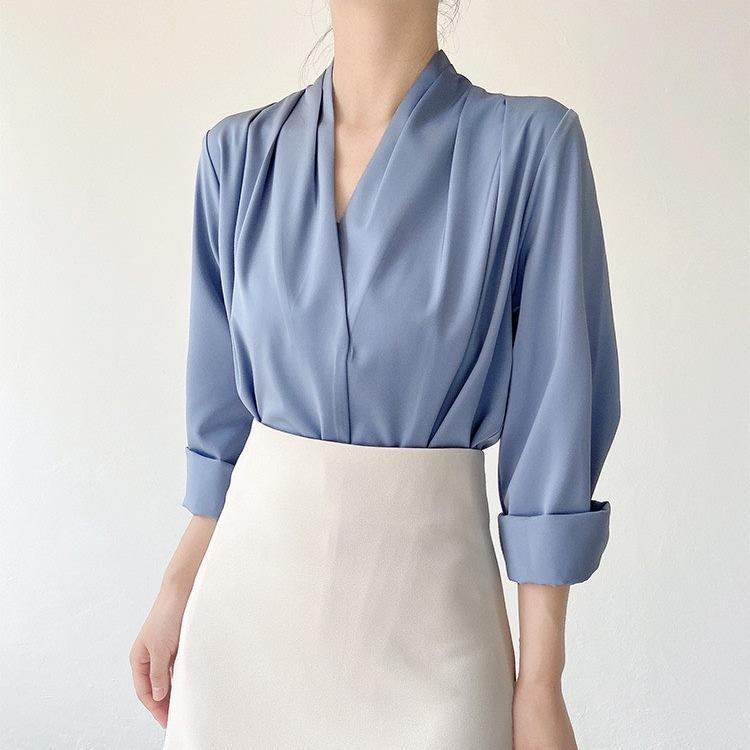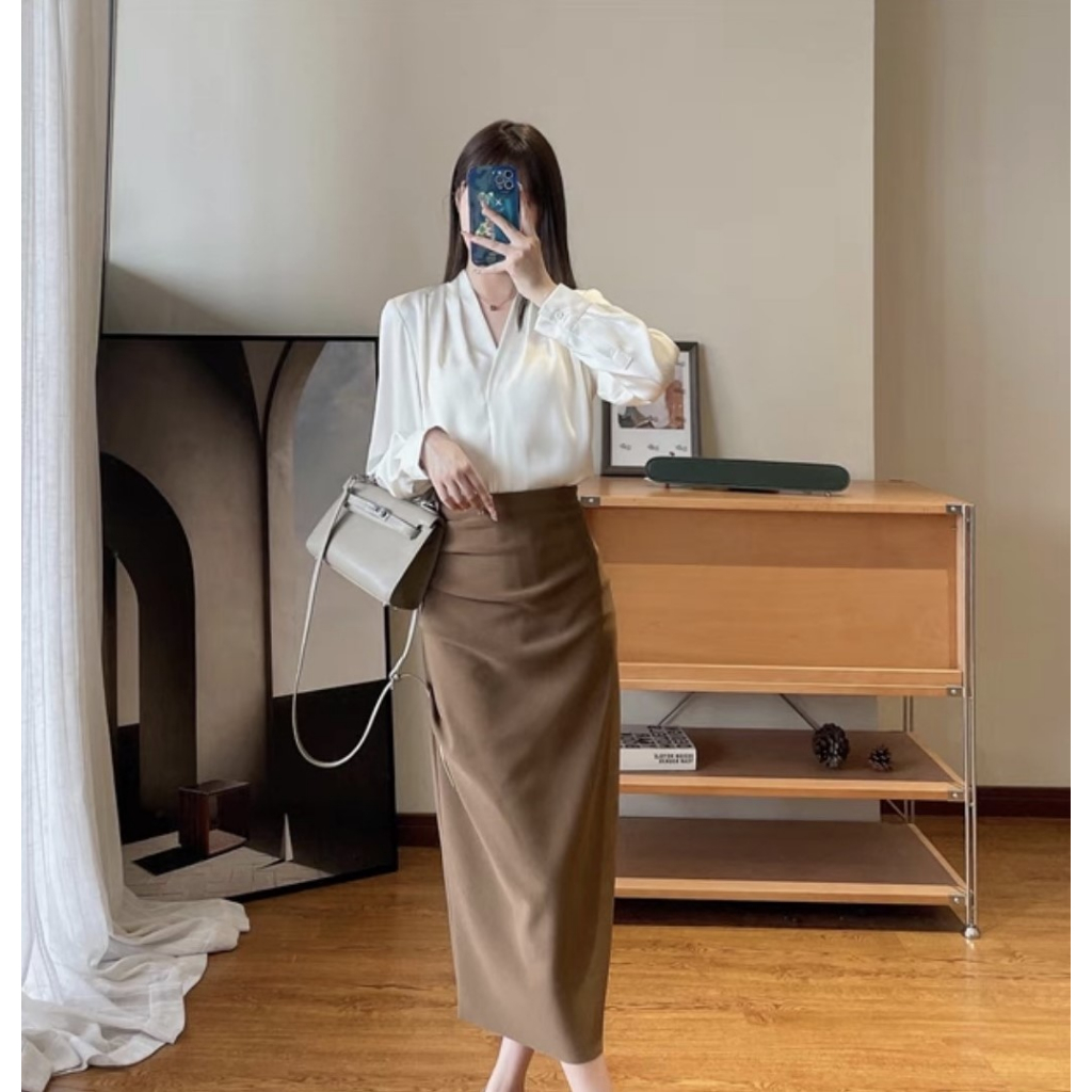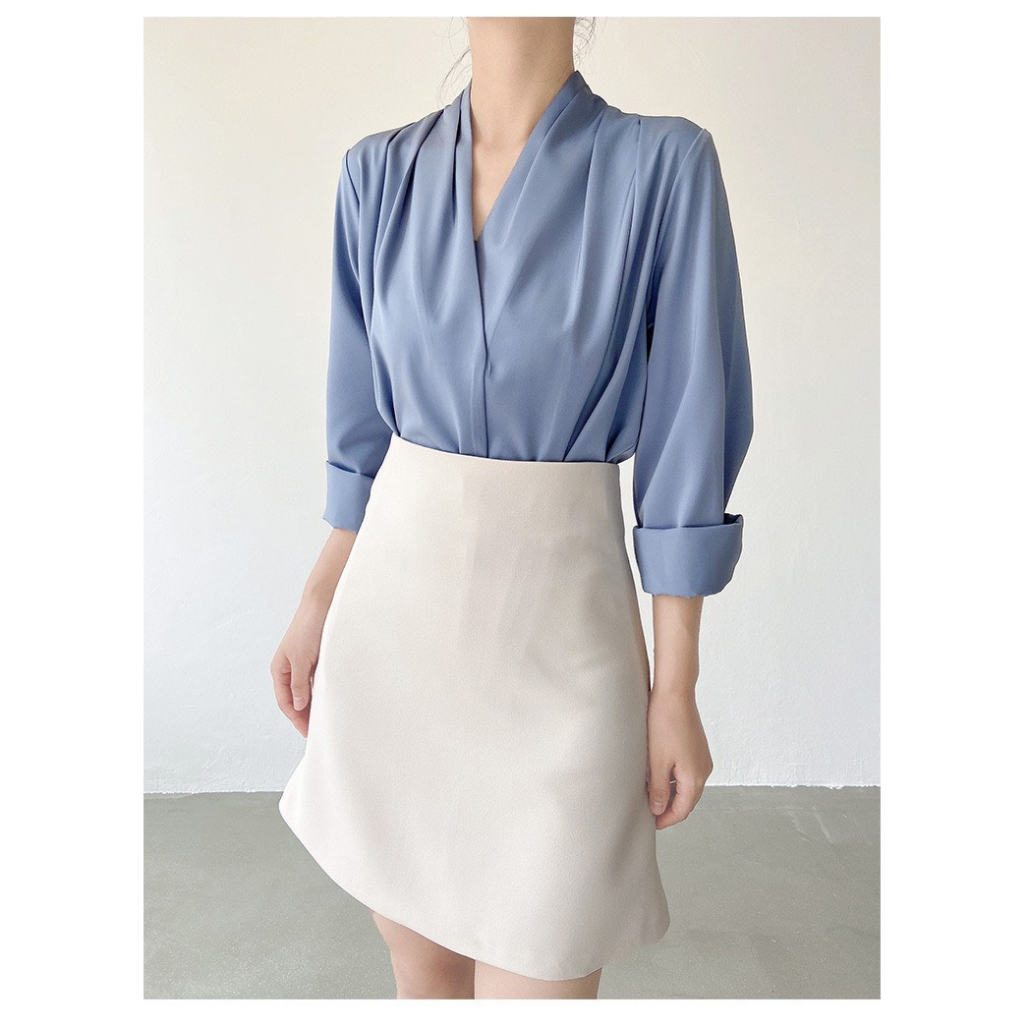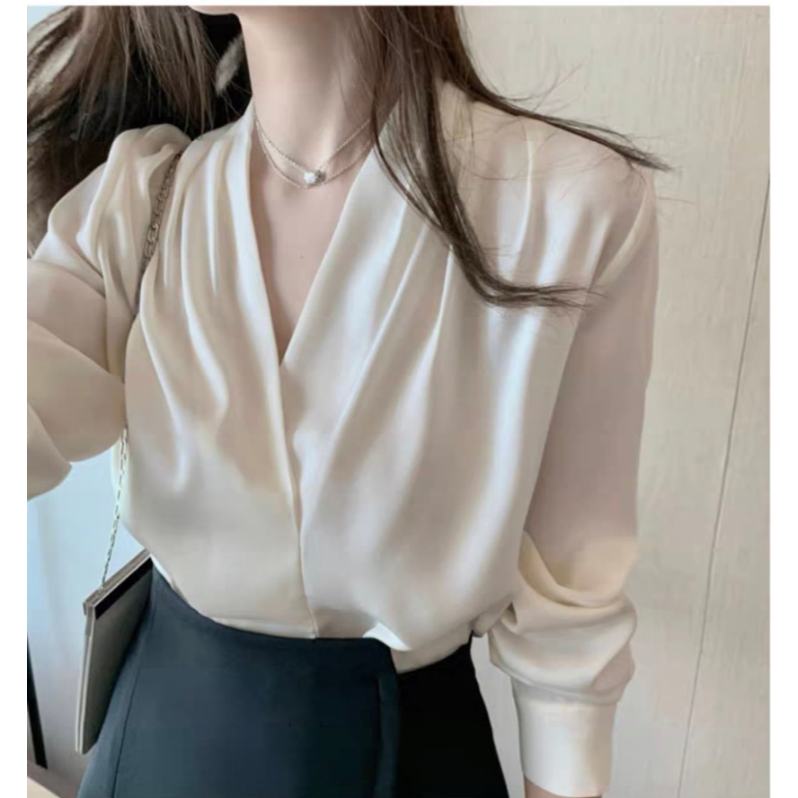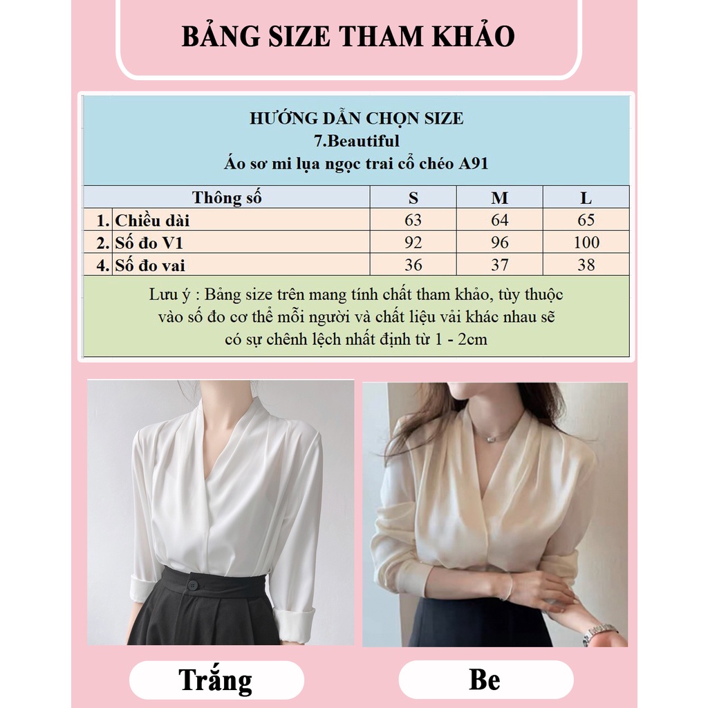 Áo sơ mi lụa, sơ mi nữ cổ chéo phong cách công sở nữ tính thiết kế dài tay chất mềm mịn màu xinh 7.Beautiful A91