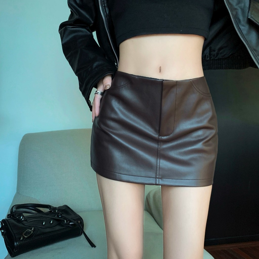 Bán Nóng! Váy ngắn F & X Váy da hot girl thời trang Maillard váy ngắn thường ngày ôm mông cạp cao màu đen mẫu mới thu đông cho nữ Váy mini
