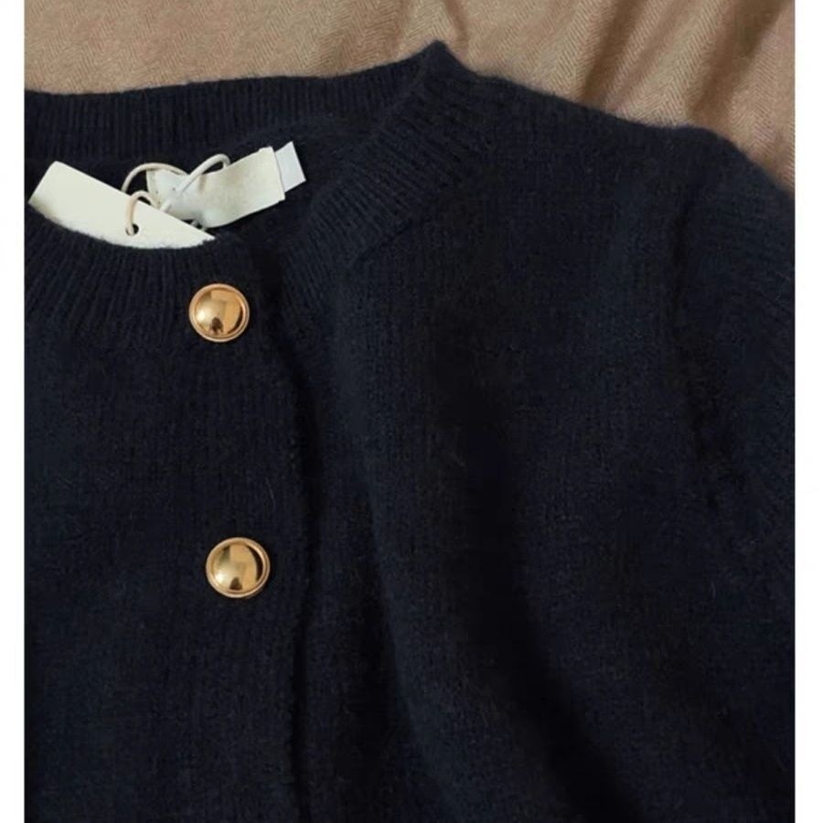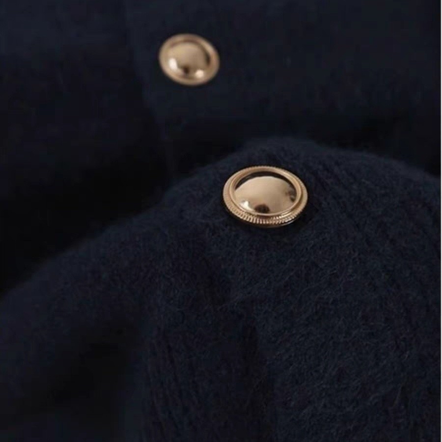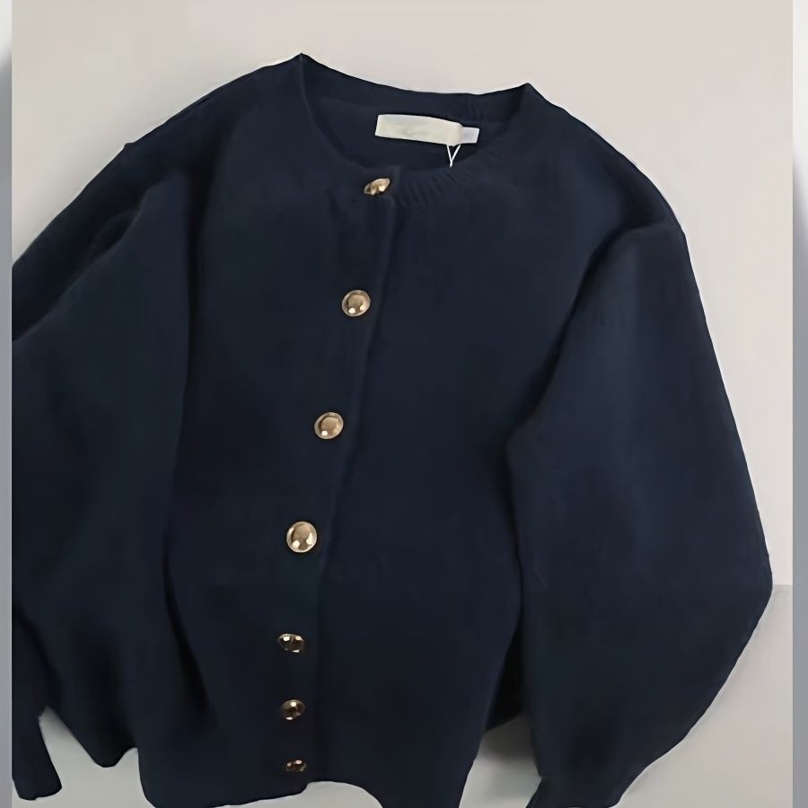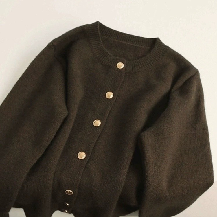 FXDAZI! Áo khoác nâu với nút vàng, áo len cho phụ nữ mùa thu đông, áo cardigan len nâu lỏng lẻo có thể mặc lộ.