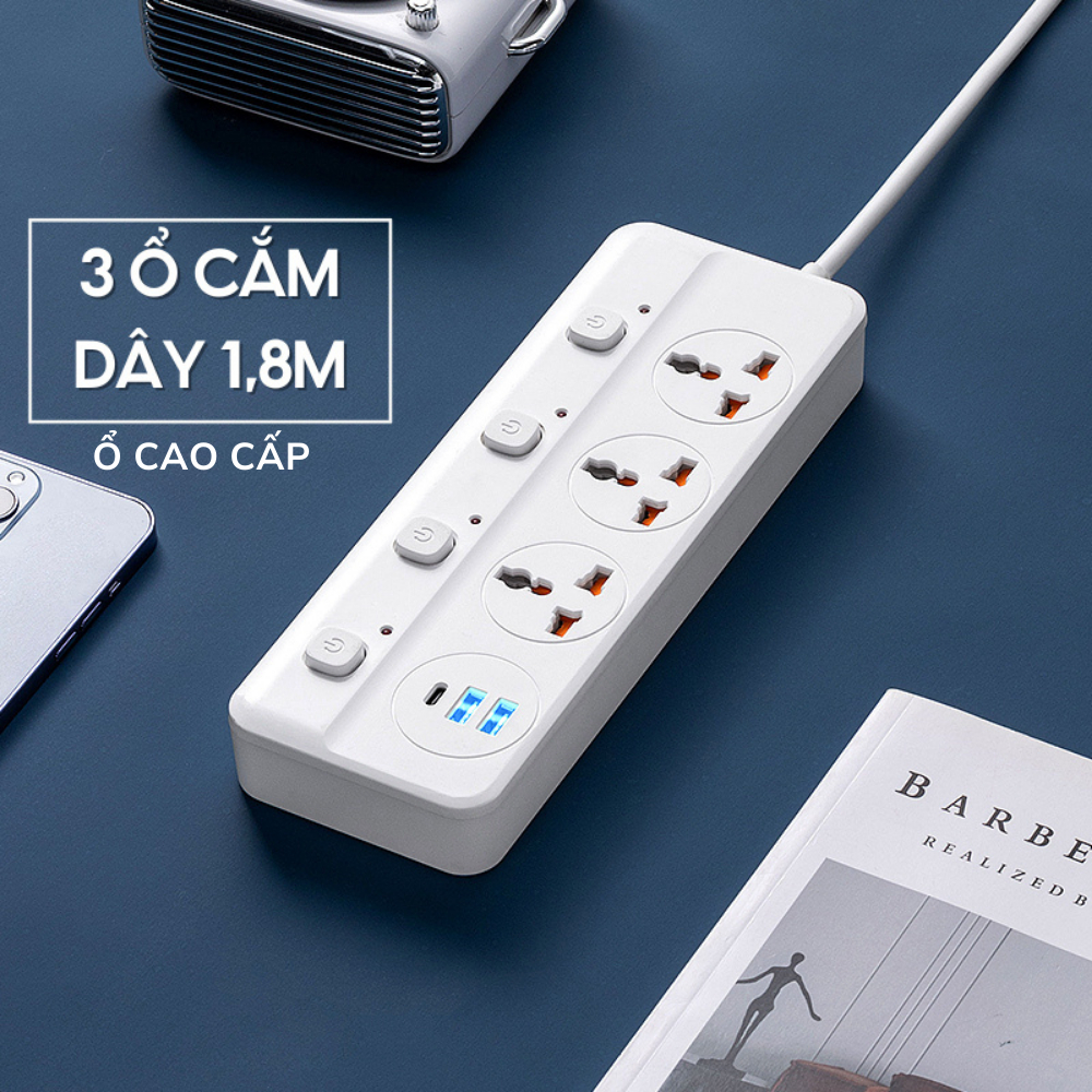 Ổ Cắm Điện Đa Năng HOKU 2 Cổng USB 5V Sạc Nhanh, Chịu Tải 2500W, Tiết Kiệm 30KWH, Dây Nối 2,5M-OCD08