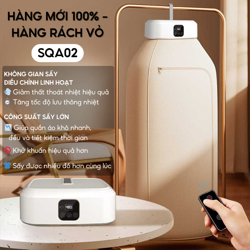 Máy Sấy Quần Áo HOKU Gấp Gọn Treo Tường, Công Nghệ Sấy Khử Trùng, 2 Chế Độ Tiết Kiệm Điện Năng-SQA01
