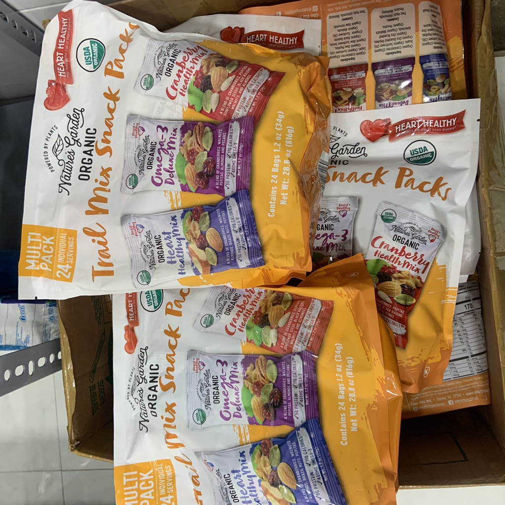 Hạt mix trái cây sấy date 11/2026 hữu cơ Nature's Garden Trail Mix Snack Packs Organic 816gram - EDS Mart