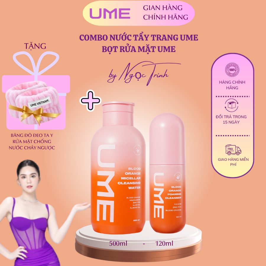 Combo Làm Sạch Sâu, Dưỡng Ẩm Đa Tầng UME - Nước Tẩy Trang 500ml và Bọt Rửa Mặt Cam Đỏ 120ml
