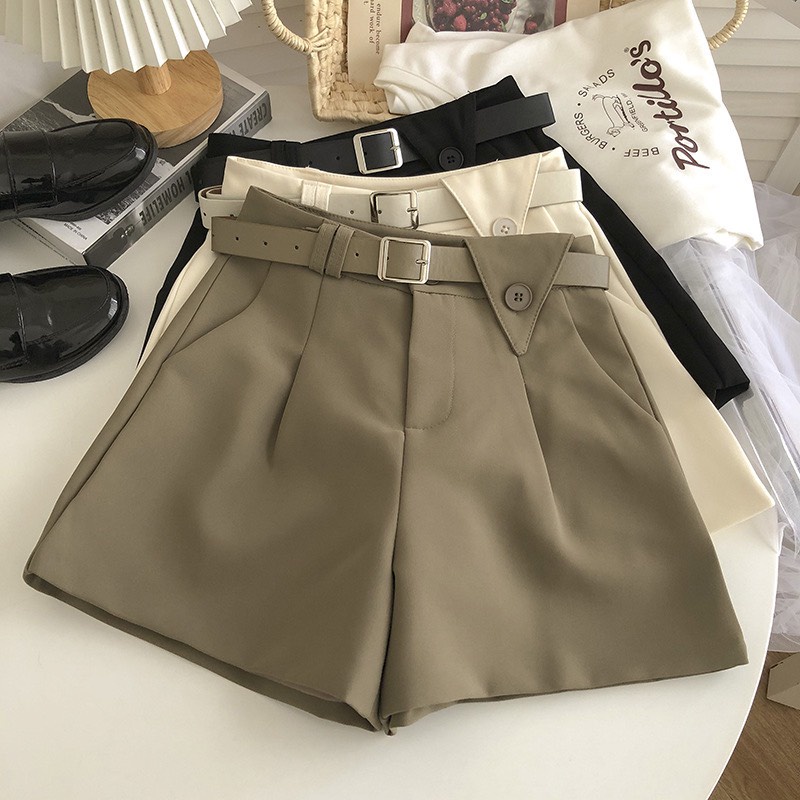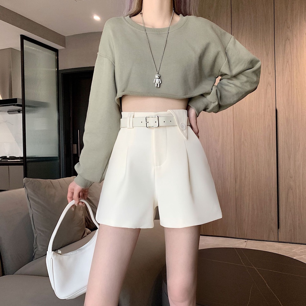 Quần đùi nữ lưng cao - Quần short nữ cạp cao cách điệu có li trước