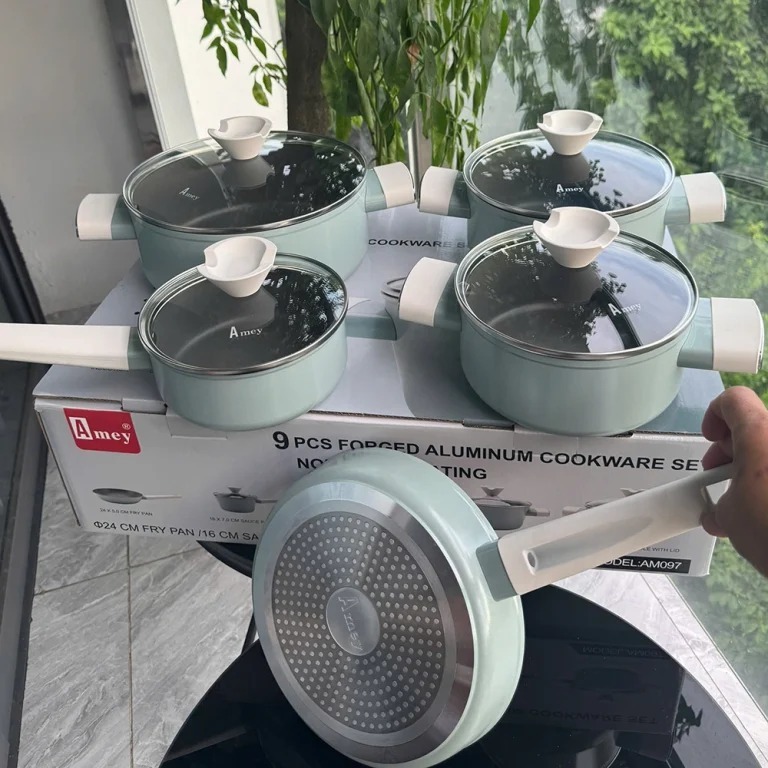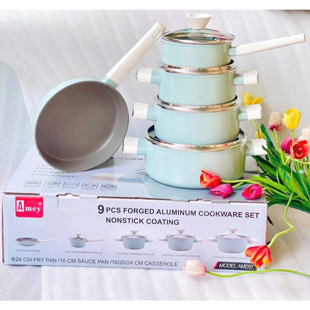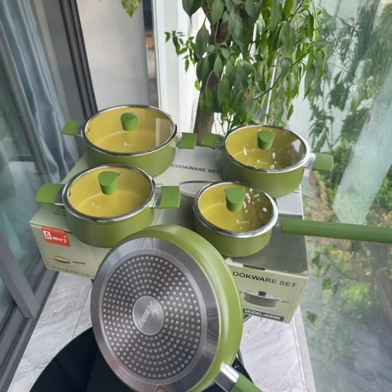Bộ 5 Nồi Phủ Sứ Chống Dính Ceramic Amey, Bộ Nồi Chảo Đa Năng Hợp Kim Nhôm Cao Cấp An Toàn Bền Bỉ - Shop Đông Phong