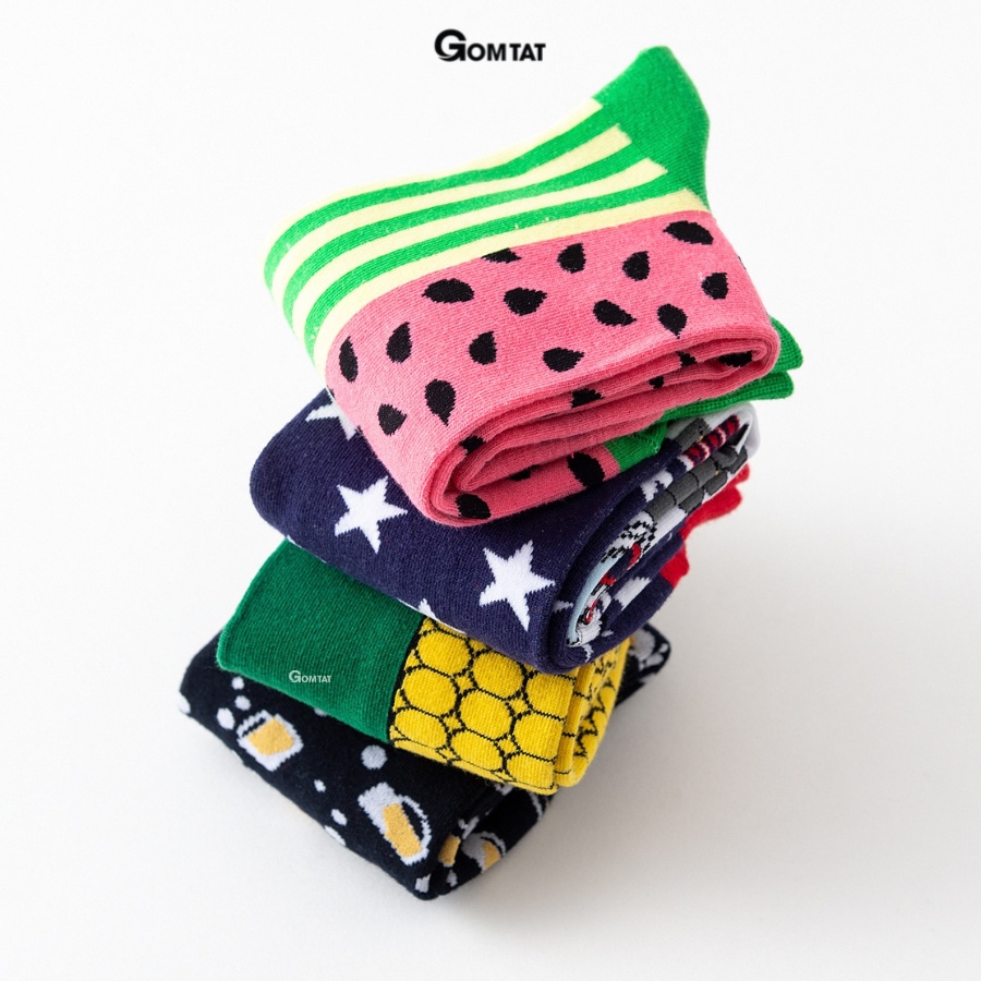 Tất vớ cổ cao nam nữ GOMTAT họa tiết dễ thương, chất liệu cotton cao cấp mềm mại êm chân, hút ẩm thoáng khí -FUJI