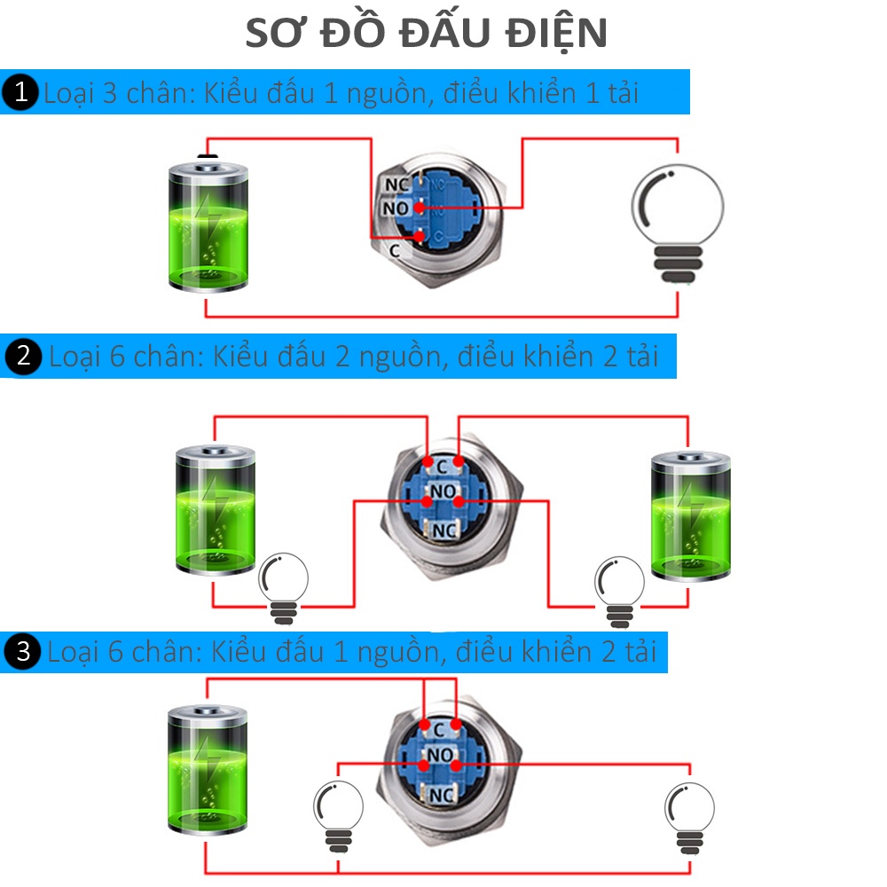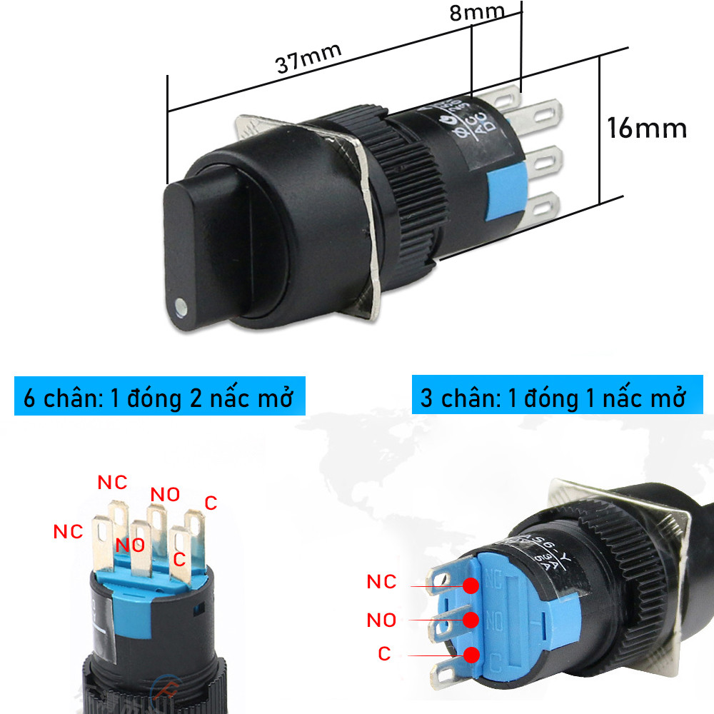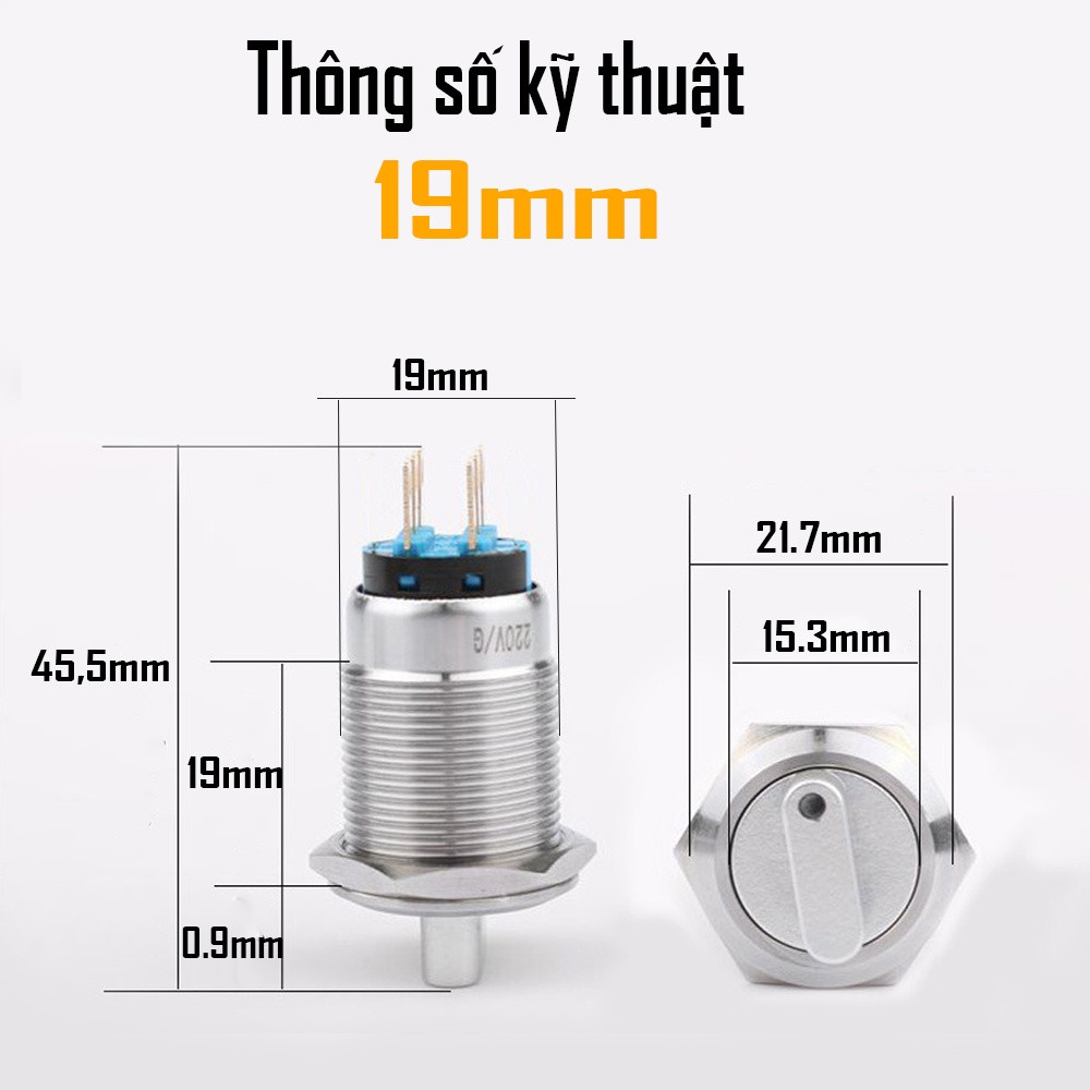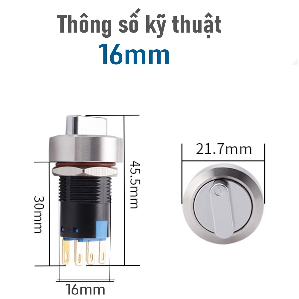 Công tắc kiểu núm xoay Tự khóa 2 - 3 chế độ phi 16mm, 19mm, 22mm điện áp 3V - 24V