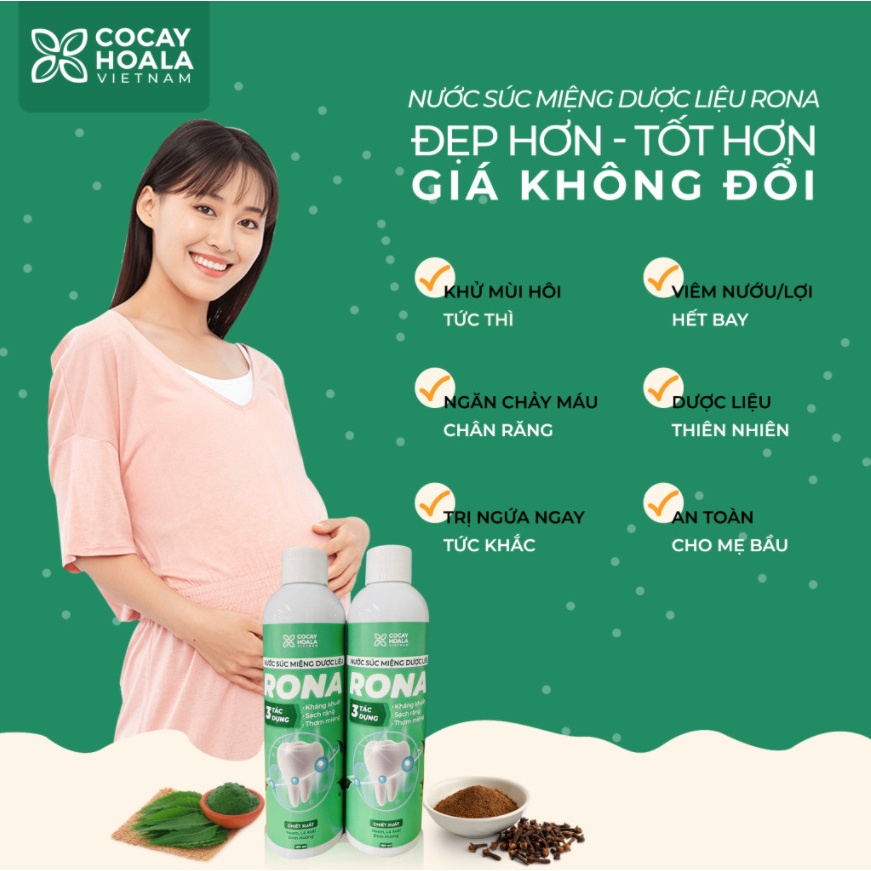 Nước Súc Miệng Dược Liệu Rona Cocayhoala - Kháng khuẩn, sạch răng, thơm miệng 180ml an toàn cho mẹ bầu và sau sinh