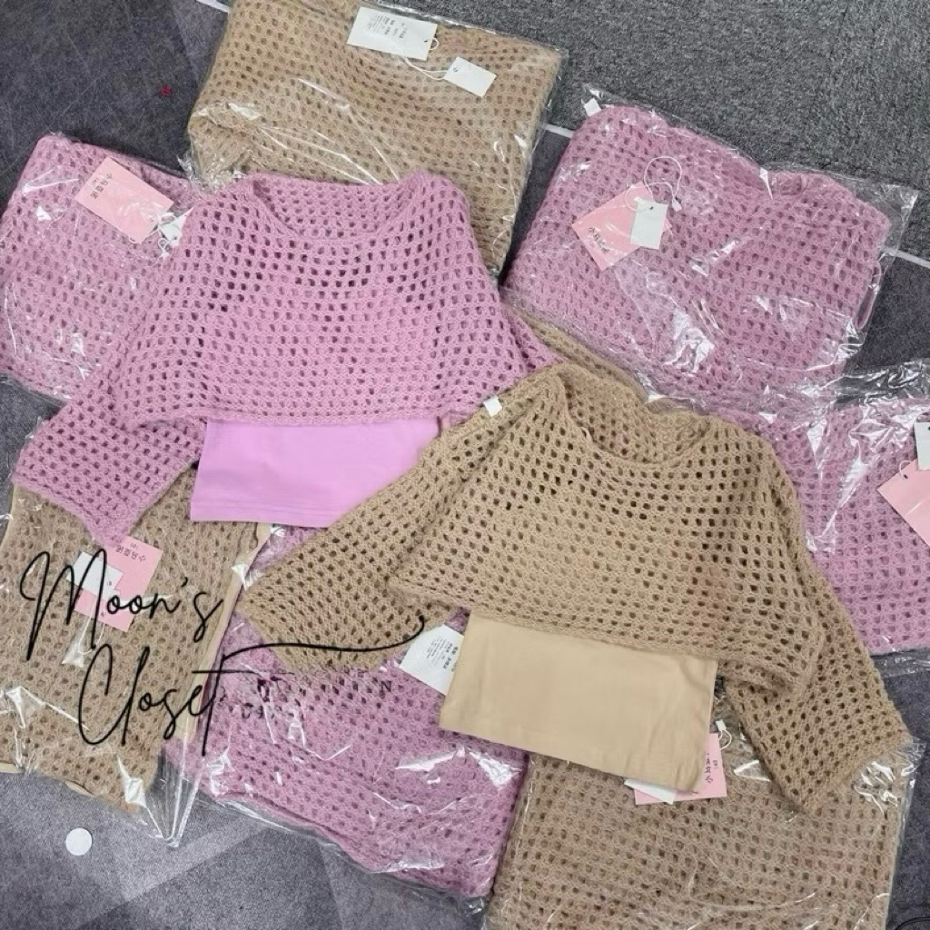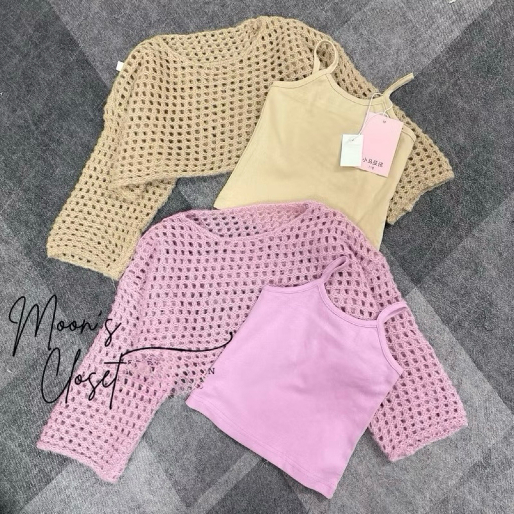 QCCC- Sét áo len lưới kèm áo 2 dây Xiao Mayanuo size 110-150 (17-40kg)