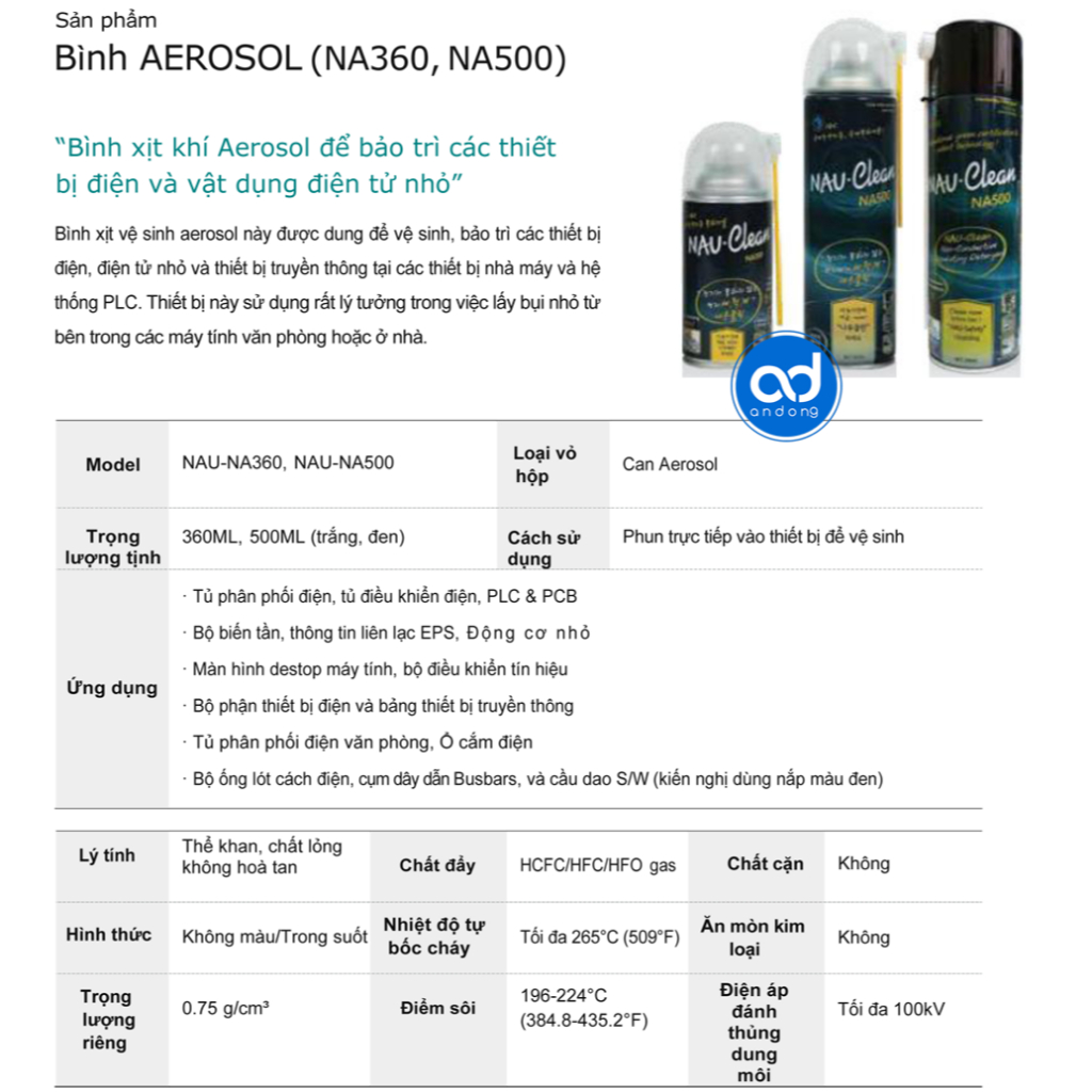 Chai tẩy rửa vệ sinh tiếp điểm điện tử NAUMADE NAU-CLEAN NA360 / NA500