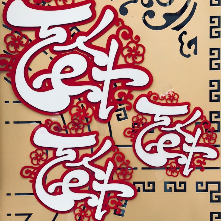 Chữ “Tết” Trang Trí Đỏ Trắng 3D – Treo Cửa, Dán Tường, Trang Trí Nhà Cửa Đón Xuân có keo sẵn (Kim Biên)