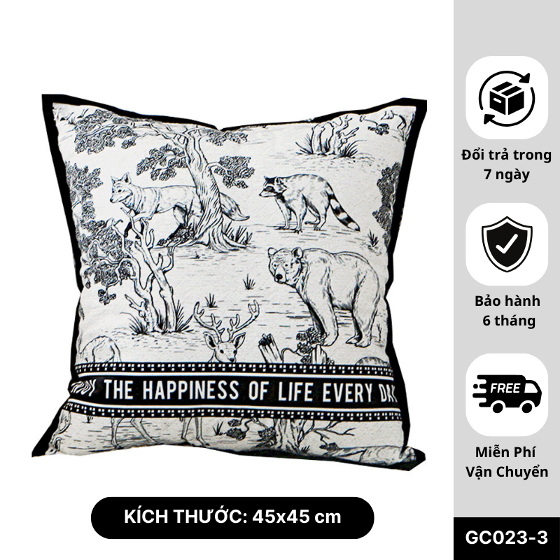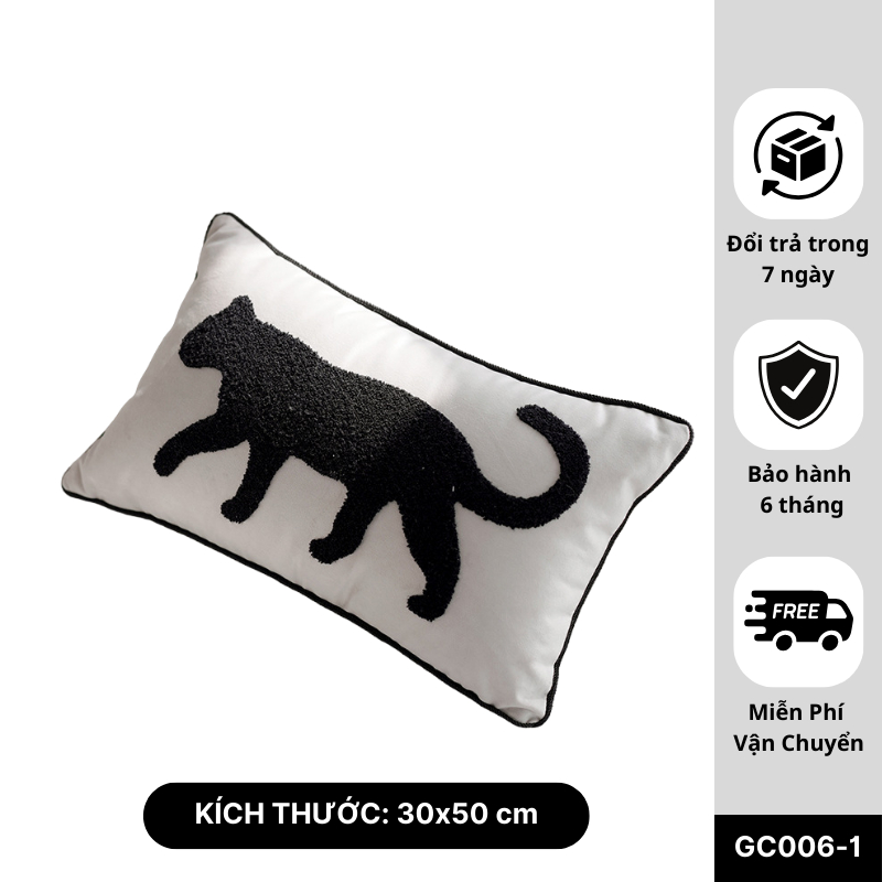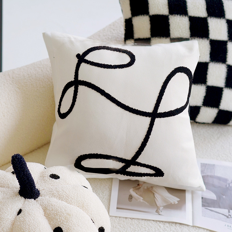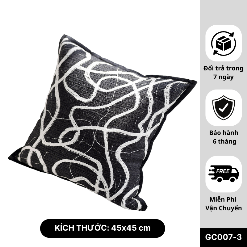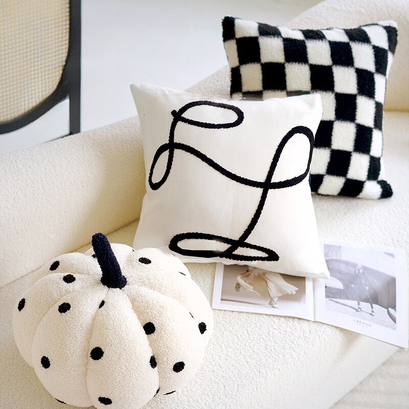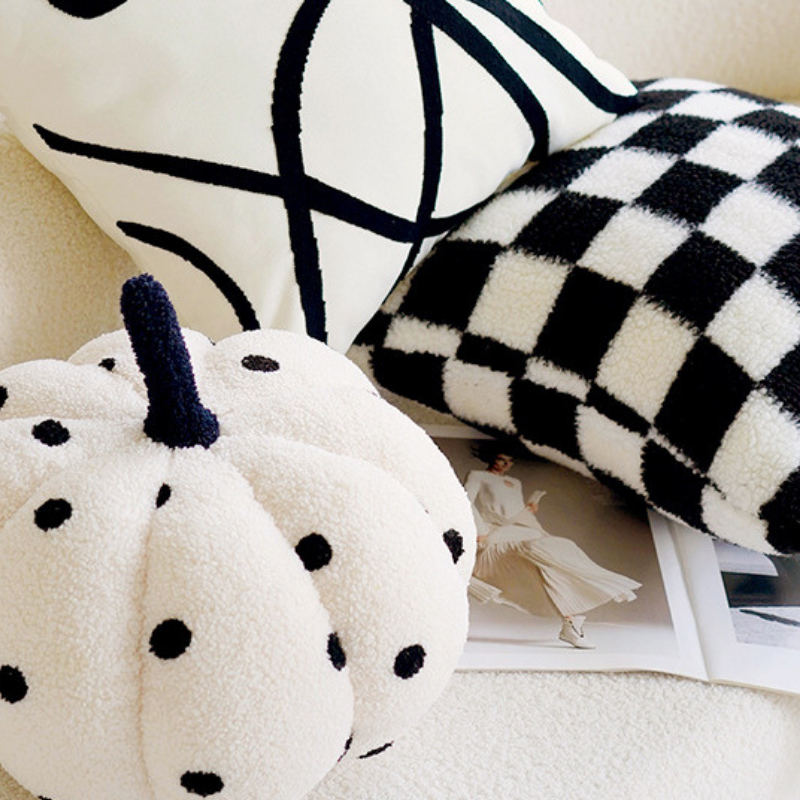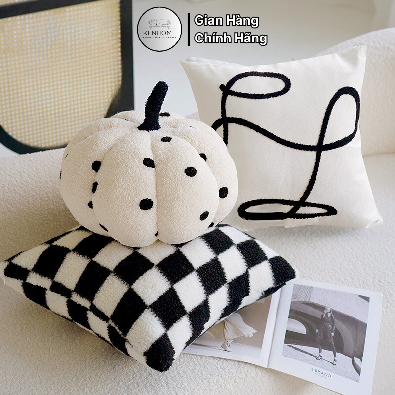 Gối Sofa Họa Tiết Trắng Đen, Gối Trang Trí Sofa Cao Cấp Quả Bí Cho Phòng Khách, Khách Sạn, Kích Thước 45x45 cm, KENHOME