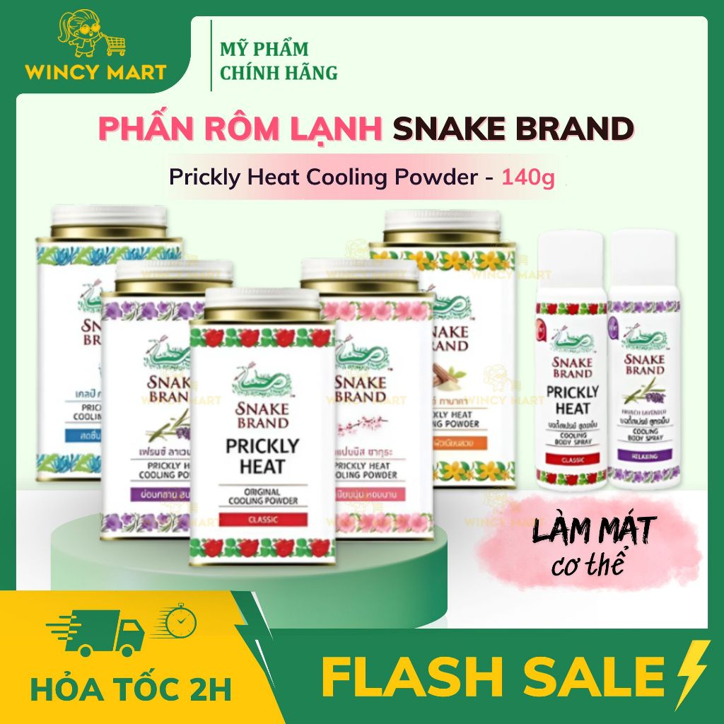 Phấn, Chai Xịt Lạnh Snake Brand Prickly Heat Cooling Powder 140g Giúp Kiềm Dầu, Khử Mùi Hôi