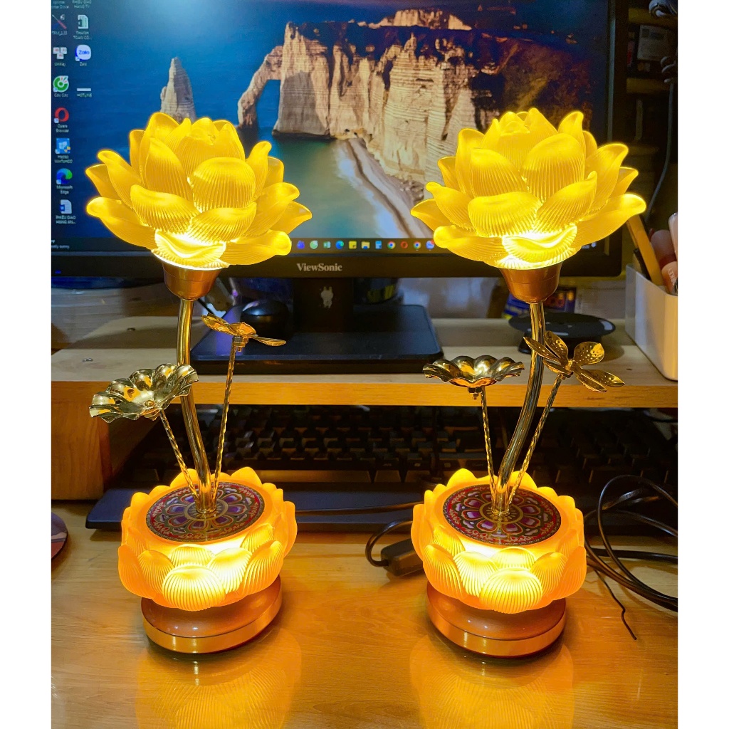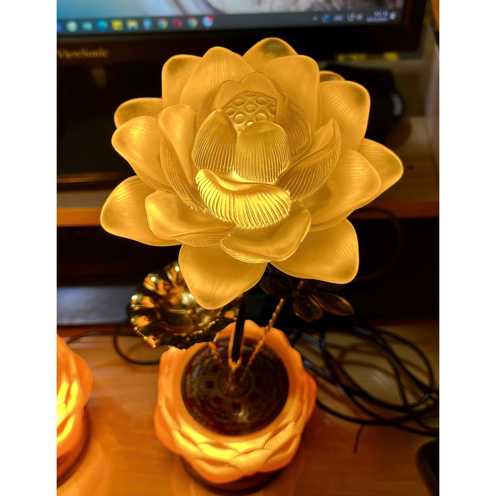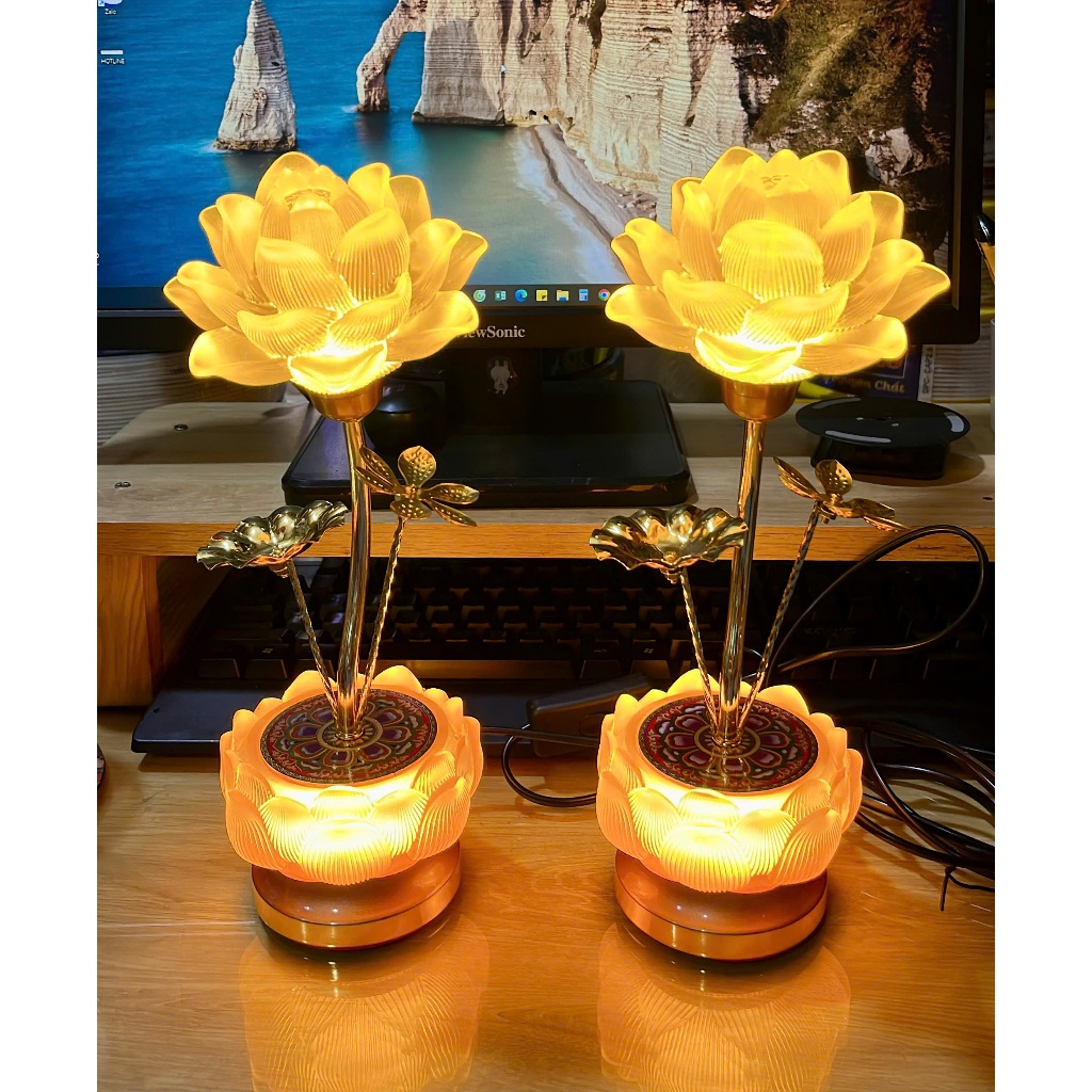 Đèn thờ Lưu Ly hoa sen 260 cao 29cm ánh sáng vàng - Giá bán 1 cặp 2 đèn