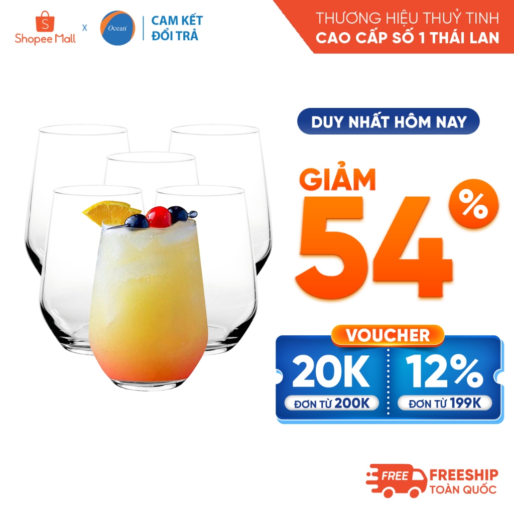 [Cam Kết Đổi Trả Nếu Vỡ] Bộ 6 Ly Thủy Tinh Ocean Lexington Hiball 370ml - Chính Hãng