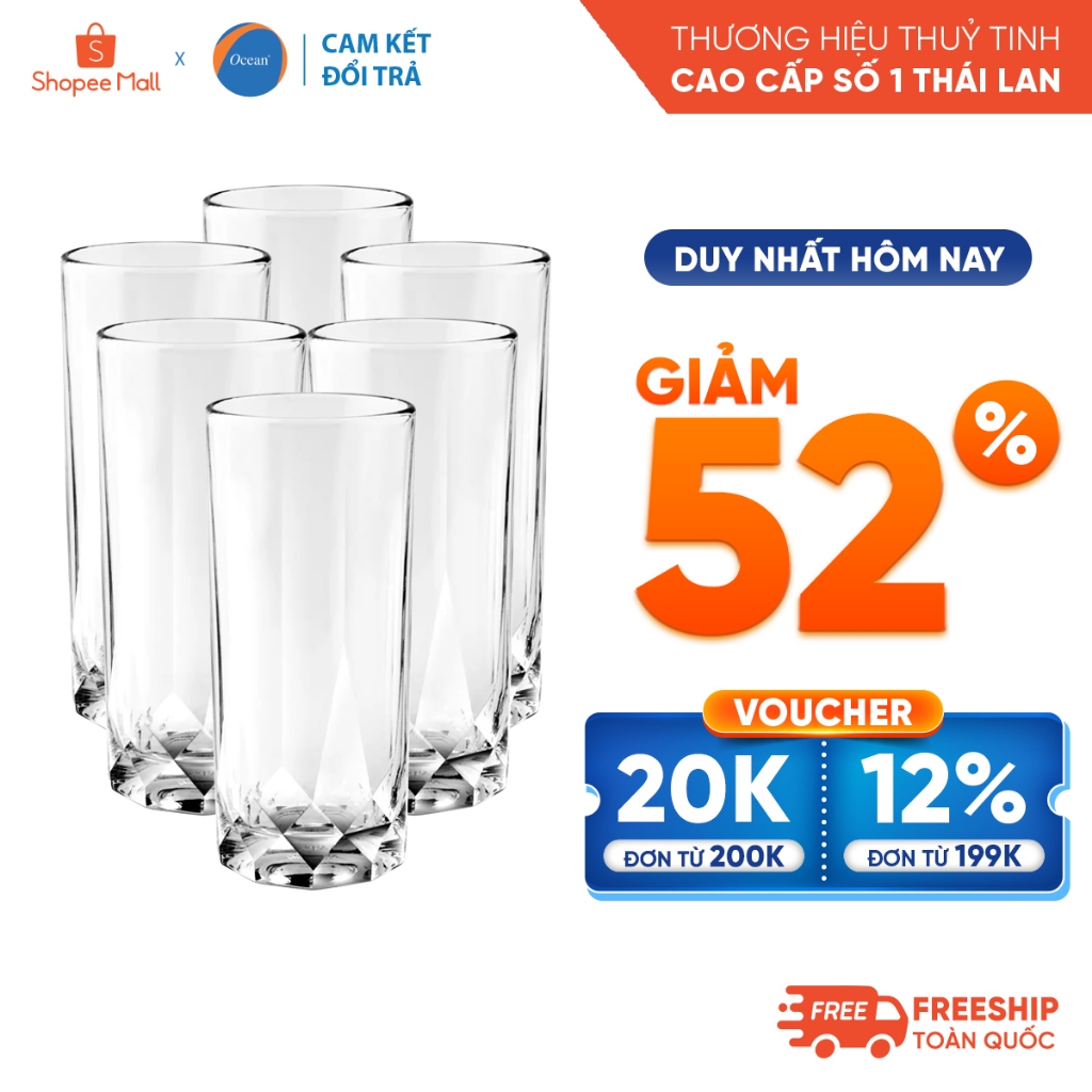 [Cam Kết Đổi Trả Nếu Vỡ] Bộ 6 ly thủy tinh Ocean Connexion Long Drink 430ml - Chính Hãng
