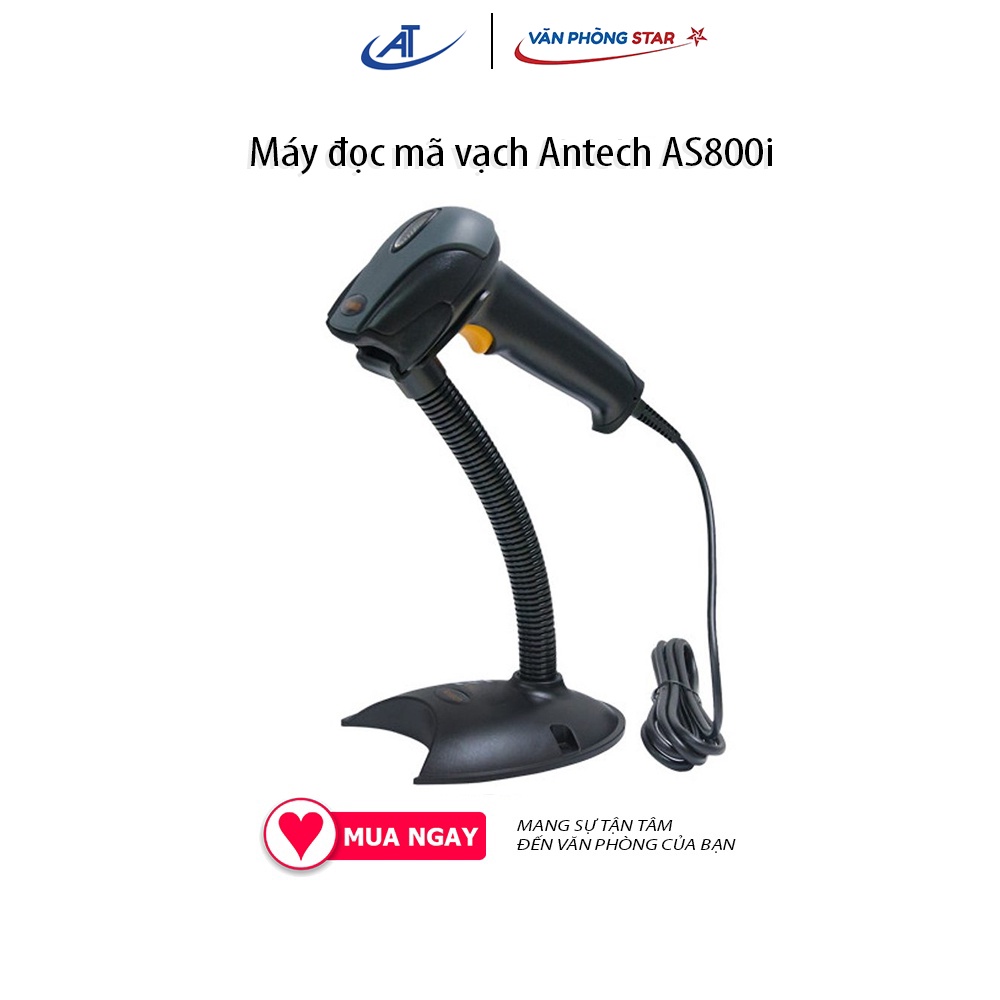 Máy quét mã vạch 1D Antech AS800i có dây Công nghệ đọc CCD Tốc độ 300 scan/s Kết nối USB Chất liệu nhựa cao cấp ABS+PC