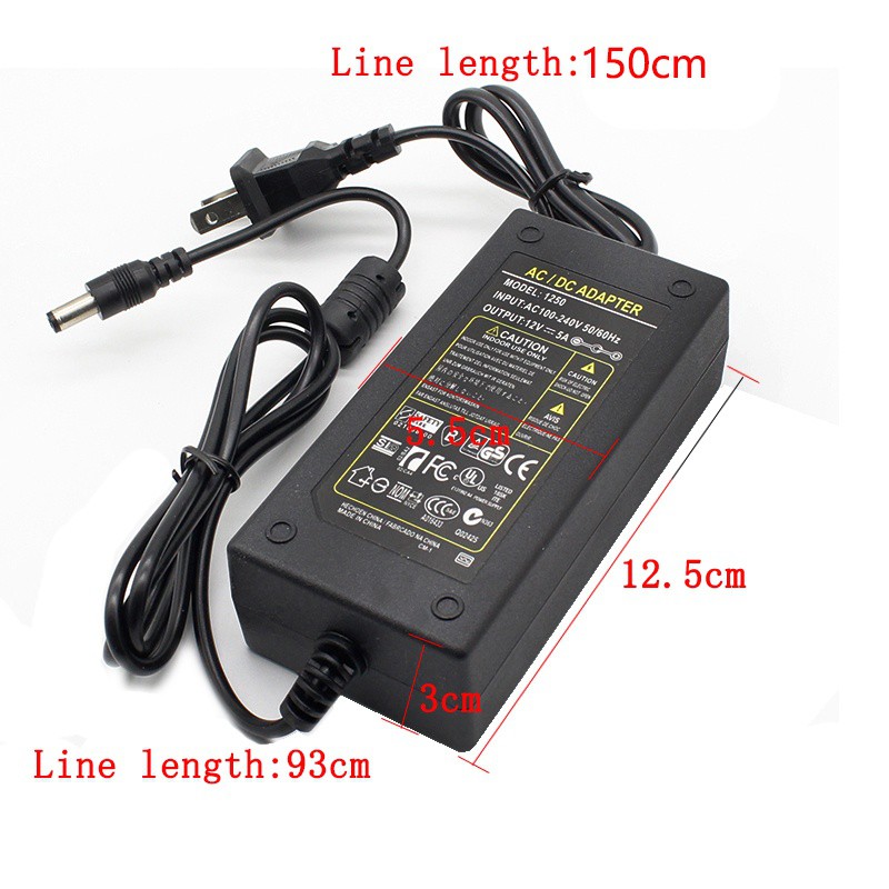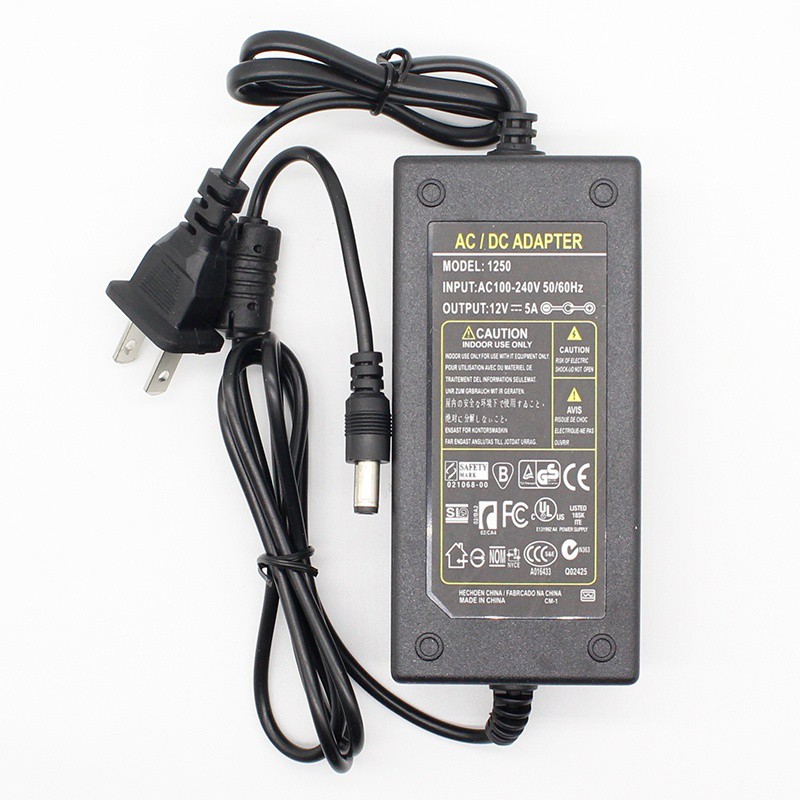 Bộ Sạc Nguồn 100-240V AC Sang DC 12V/5A Đầu Cắm 5.5mm X 2.5mm