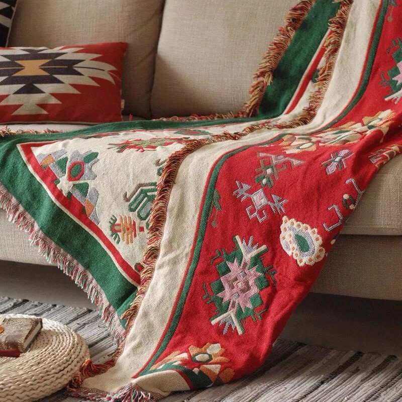 Thảm Vintage, Thảm Thổ Cẩm, Khăn Phủ Sofa, Thảm trải sàn Họa Tiết Giáng sinh Cao cấp