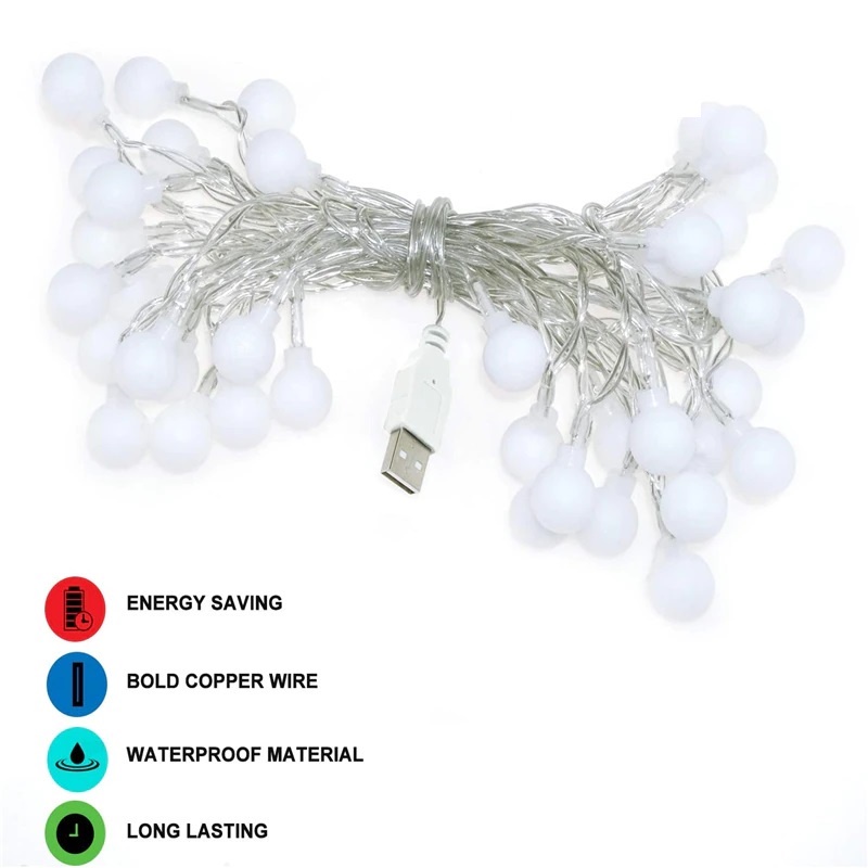 10M Dây Đèn Trang Trí Bóng Led Tròn Màu Vàng Nắng, Đèn Trang Trí Nhà Cửa, Đèn Noel