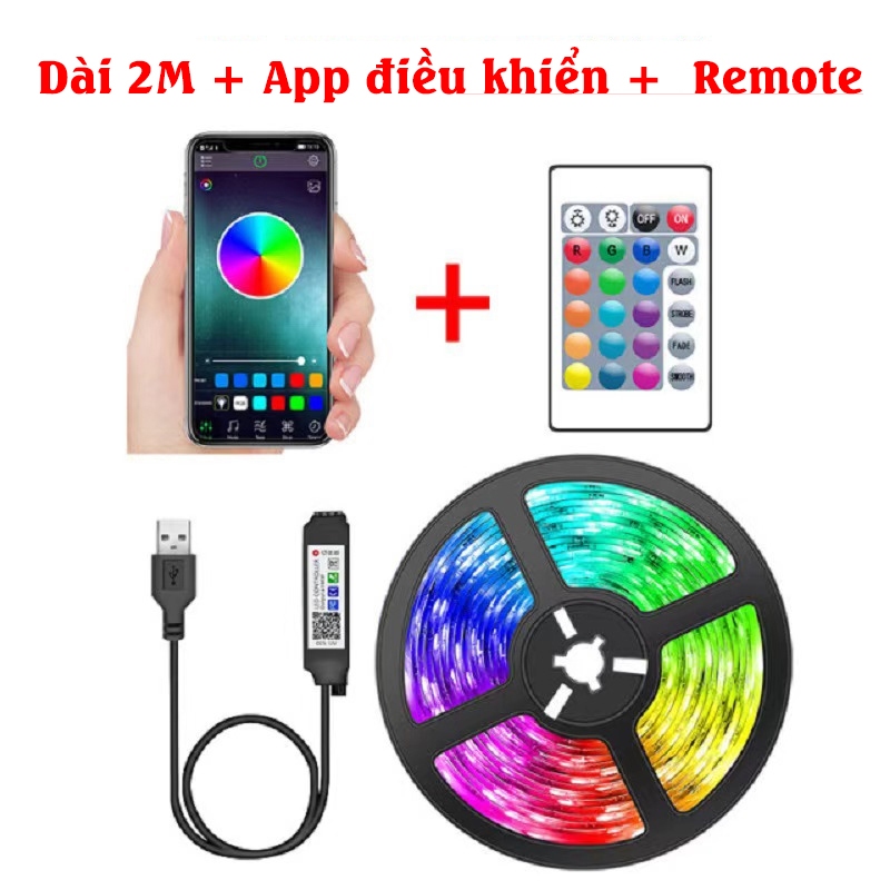 Đèn dây LED RGB 16 triệu màu decor phòng, bàn gaming, nháy theo nhạc điều khiển APP và remote phủ silicon chống nước