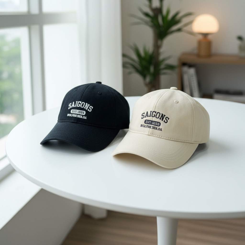 Nón Mũ Lưỡi Trai Trơn Basic màu Kem và Đen chất vải kaki dày dặn unisex nam nữ