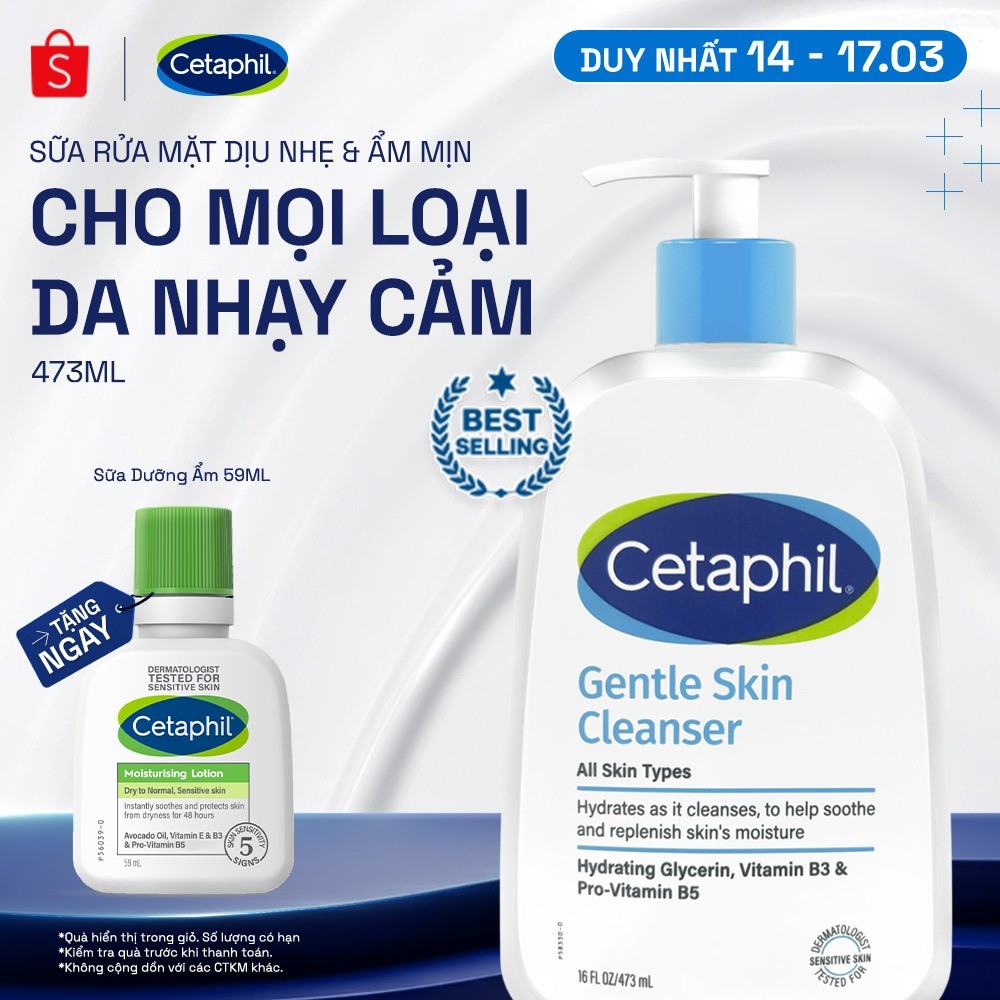Sữa rửa mặt dịu lành cho da nhạy cảm CETAPHIL GENTLE SKIN CLEANSER 473ML