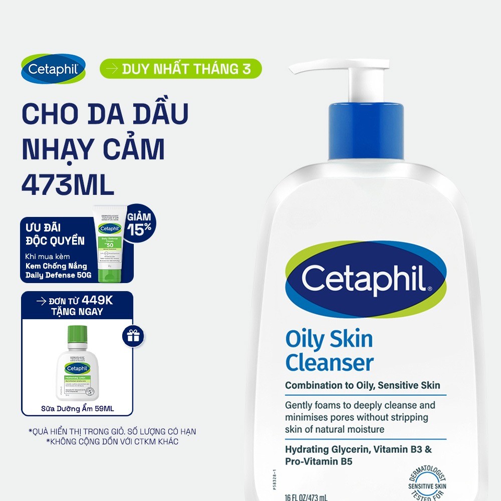 Sữa rửa mặt dịu lành cho da dầu nhạy cảm CETAPHIL OILY SKIN CLEANSER 473ML