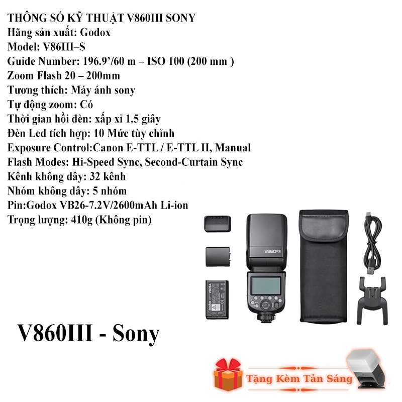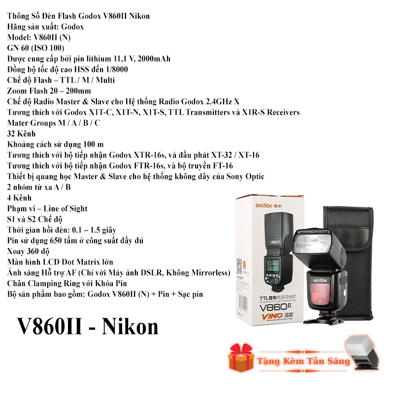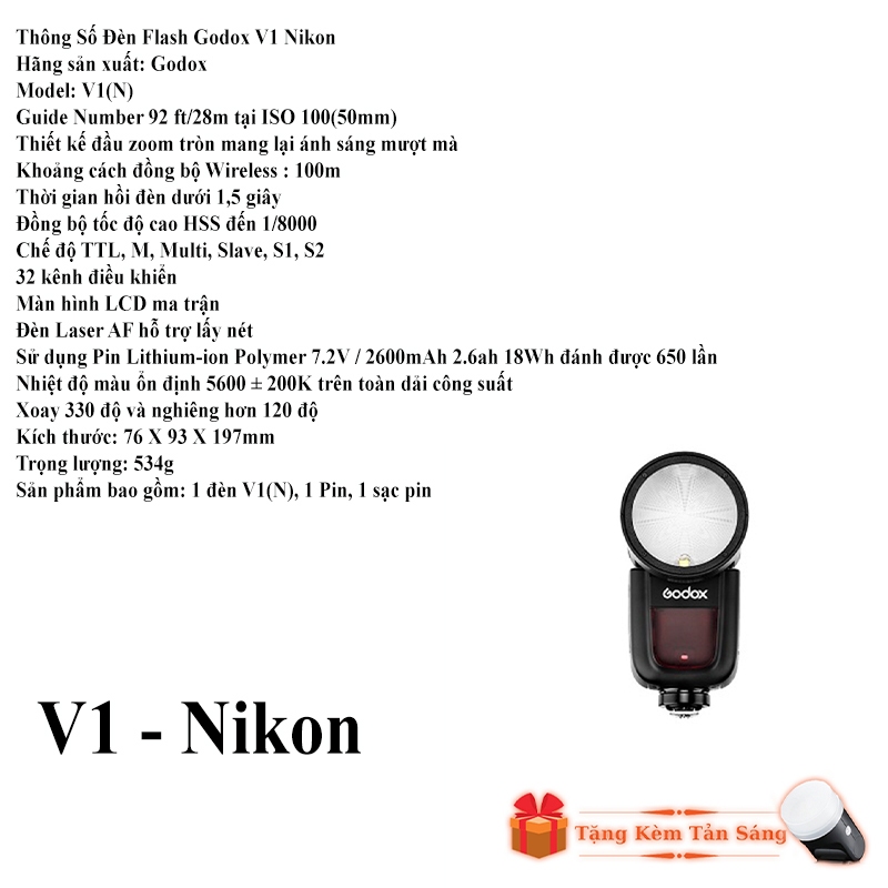 Đèn Flash Godox V1-Mid-Pro, V860II, V860III, TT685, TT600 Cho Canon, Sony, Nikon, Fuji HL Lighting
