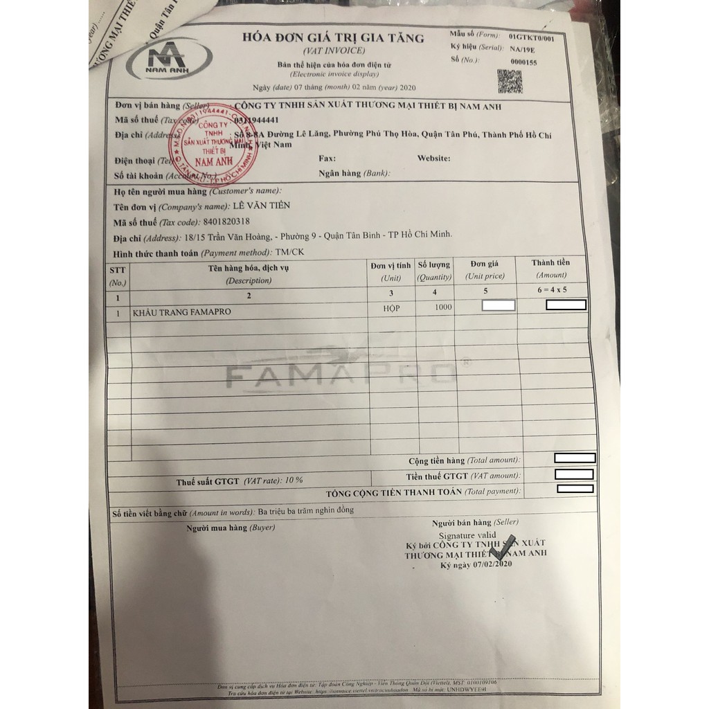 [CHÍNH HÃNG] BỘ 50 CÁI KHẨU TRANG TRẺ EM NAM ANH 5D MASK KIDS (CHIA LÀM 5 GÓI)