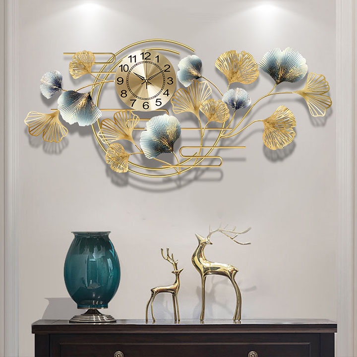 Đồng Hồ Kiêm Tranh Sắt Treo Tường Lá Bạch Quả Tròn GK04