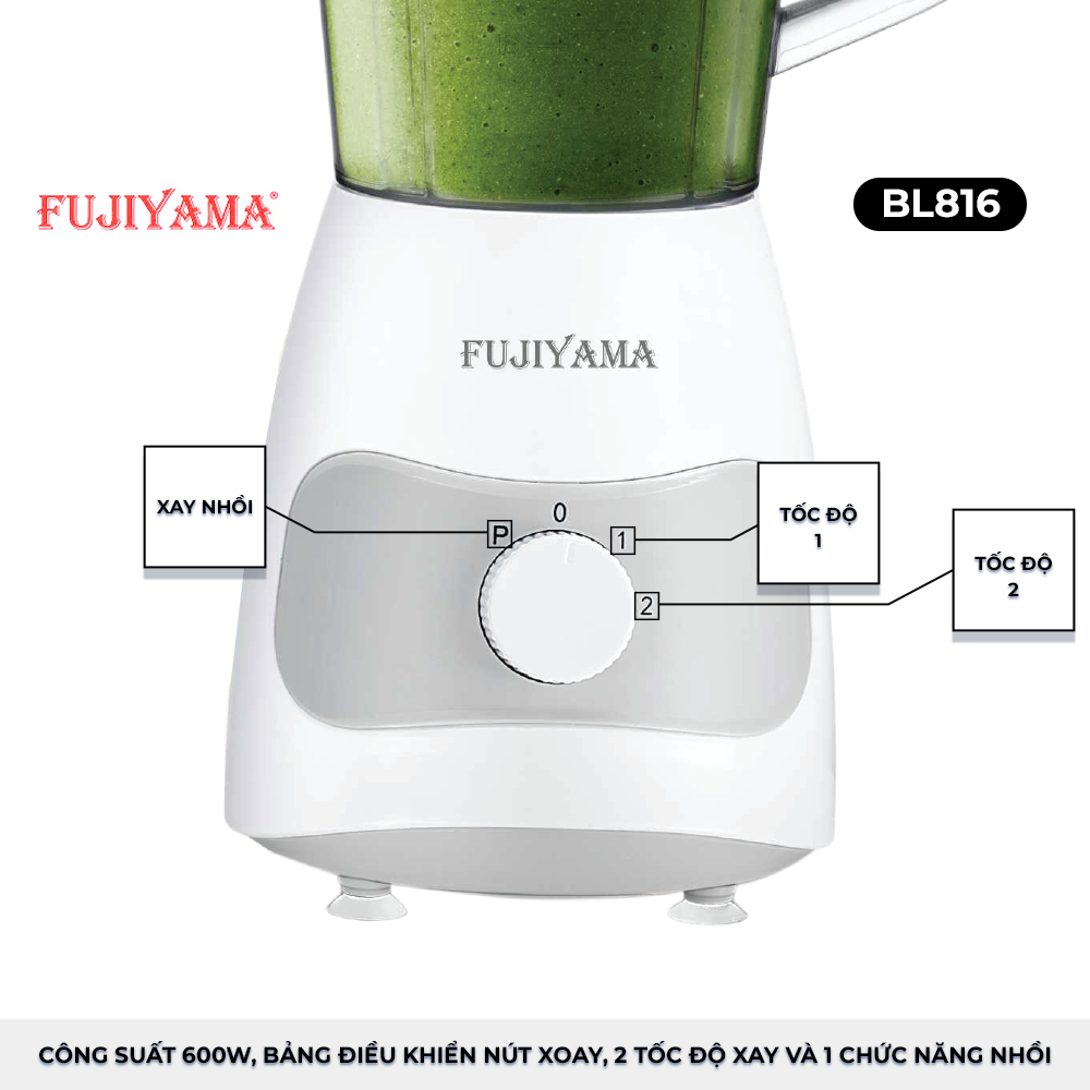 MÁY XAY SINH TỐ FUJIYAMA BL816 - 600W - 1.5L - Cối thuỷ tinh - 2 tốc độ - Hàng chính hãng - BH 30th
