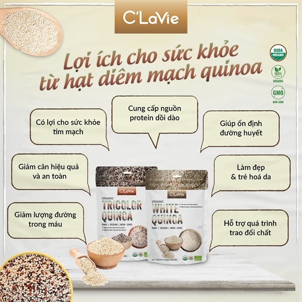 Hạt diêm mạch quinoa 3 màu hữu cơ C'Lavie (200g)
