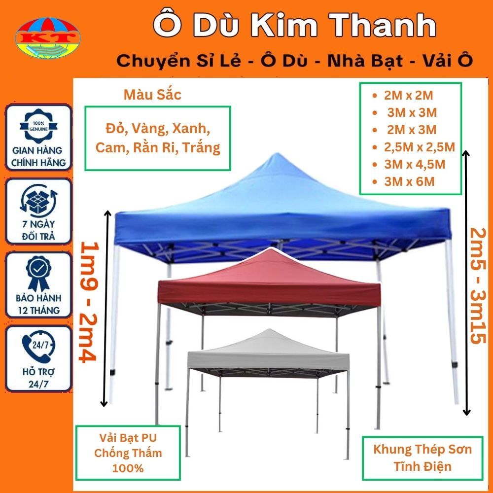 [10 Màu] Nhà Bạt Di Động Gấp Gọn 3M x 3M; 2M x 2M ; 2M x 3M ; 3M x 4,5M ; 3M x 6M Che Mưa, Nắng Khung Thép Sơn Tĩnh Điện