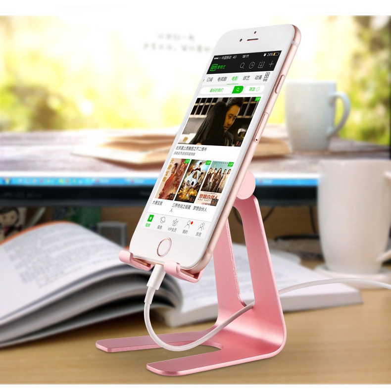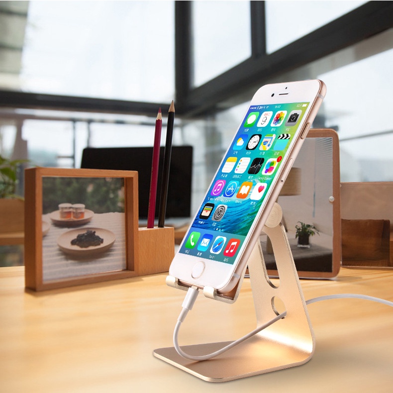 Giá kê đỡ điện thoại, ipad, máy tính bảng bằng hợp kim chắc chắn, điều chỉnh góc nghiêng, gập cất gọn gàng.