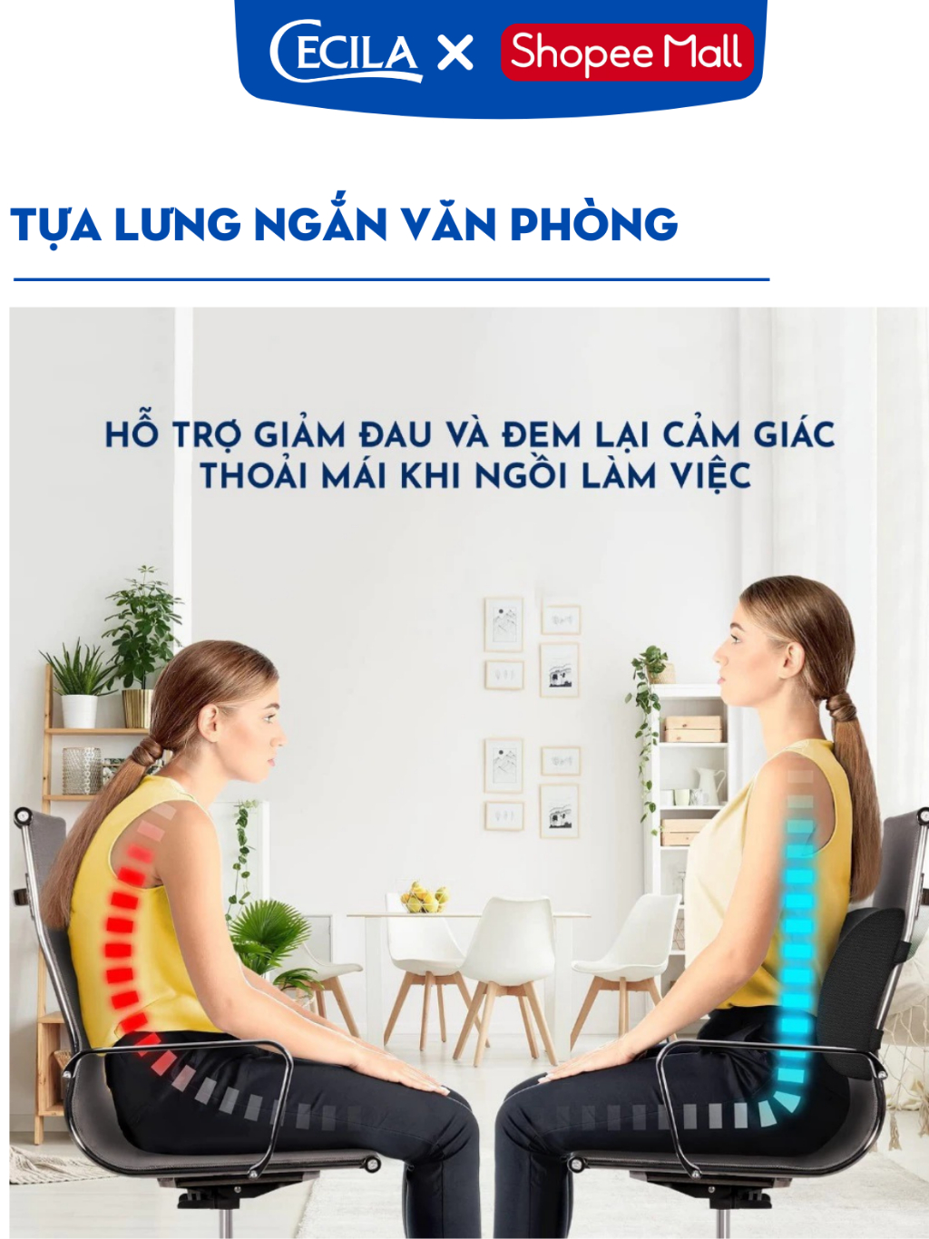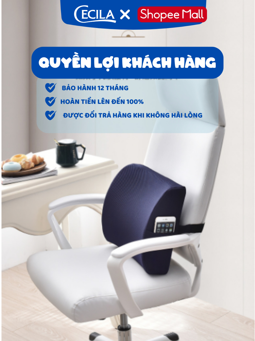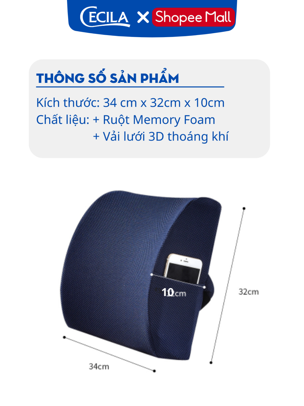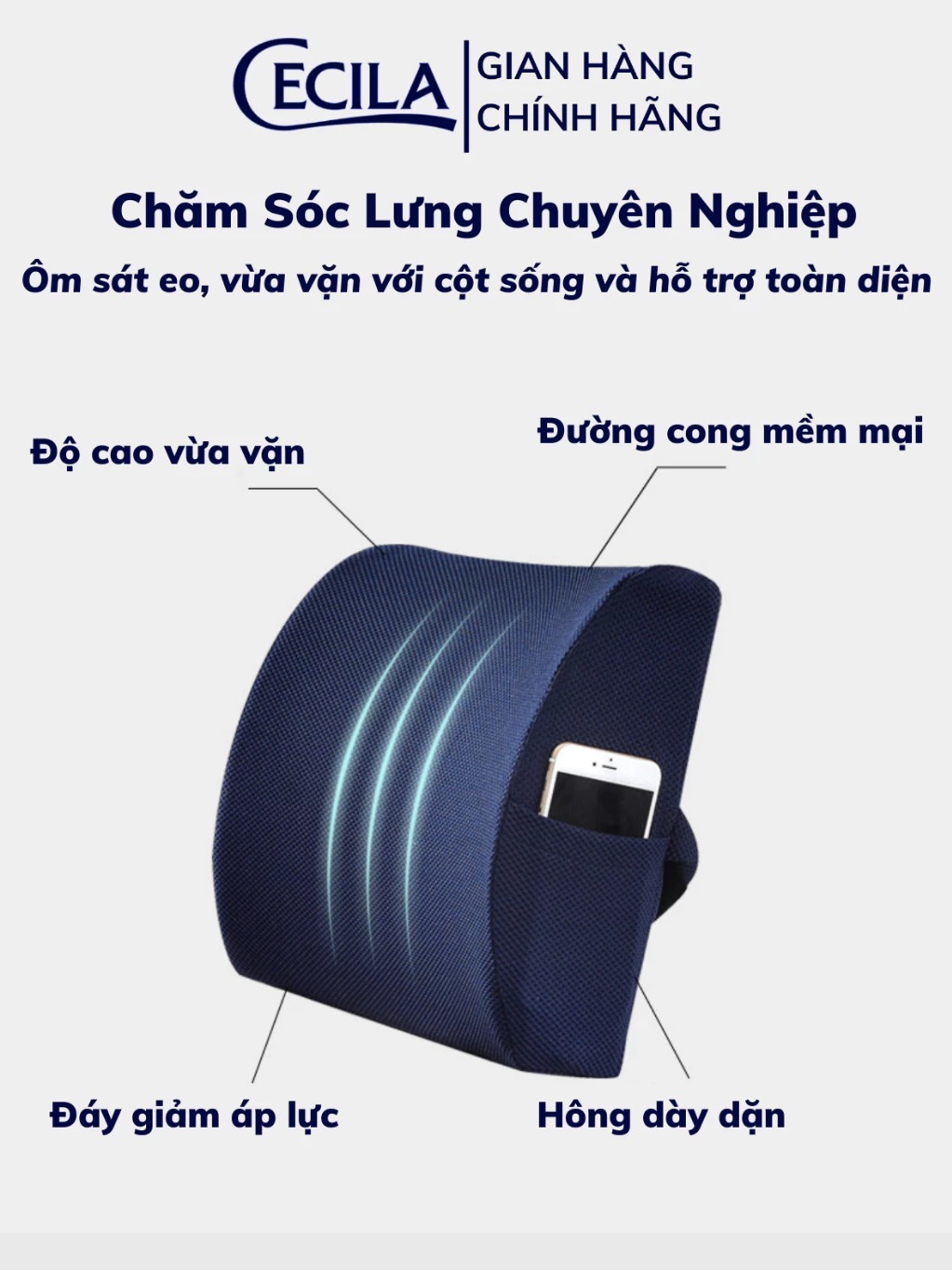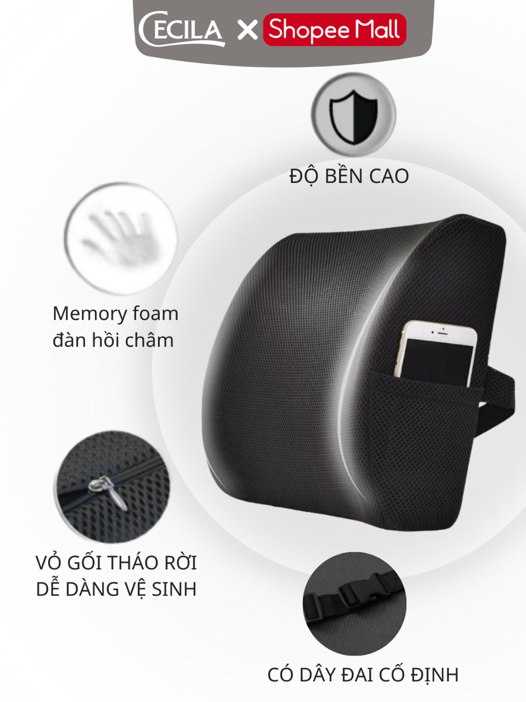 Gối tựa lưng văn phòng CECILA Gối Nệm Y Tế ruột cao su non thoáng khí đàn hồi cực tốt dành cho dân văn phòng, lái xe