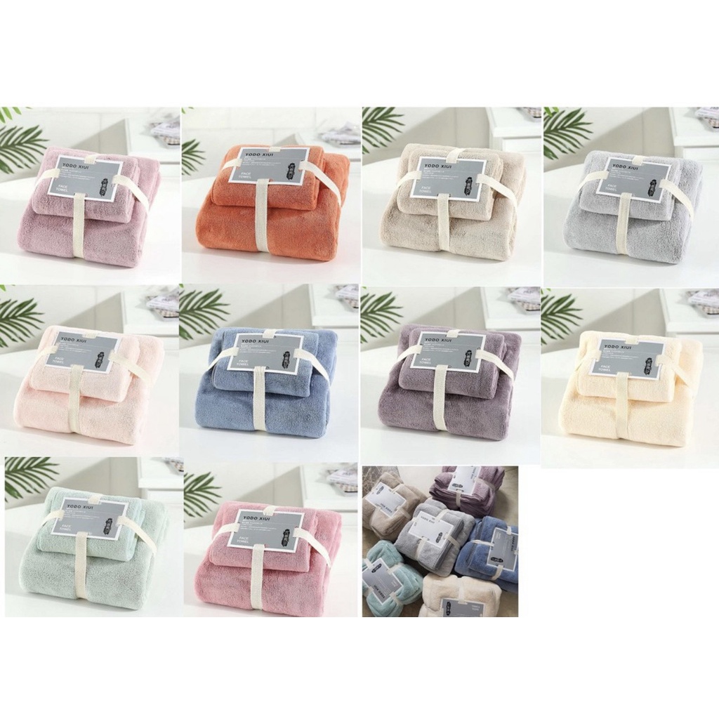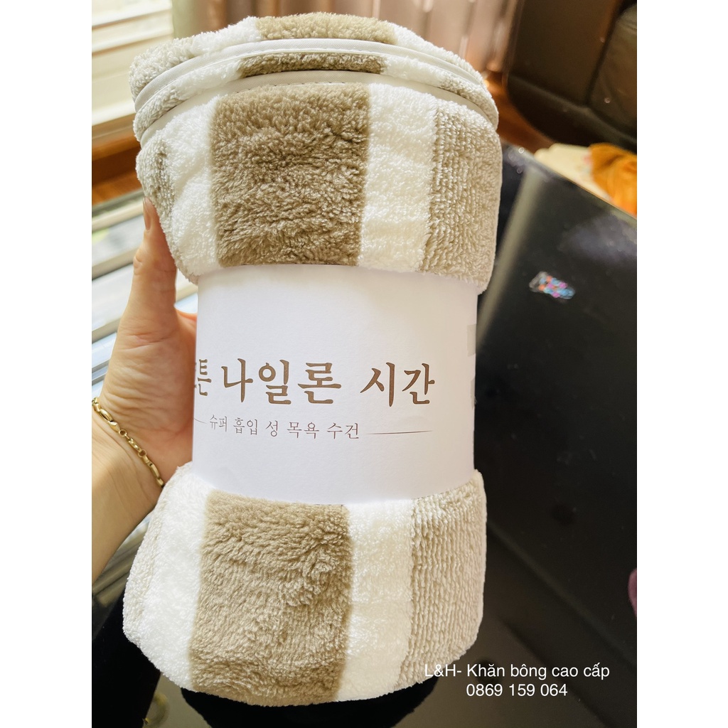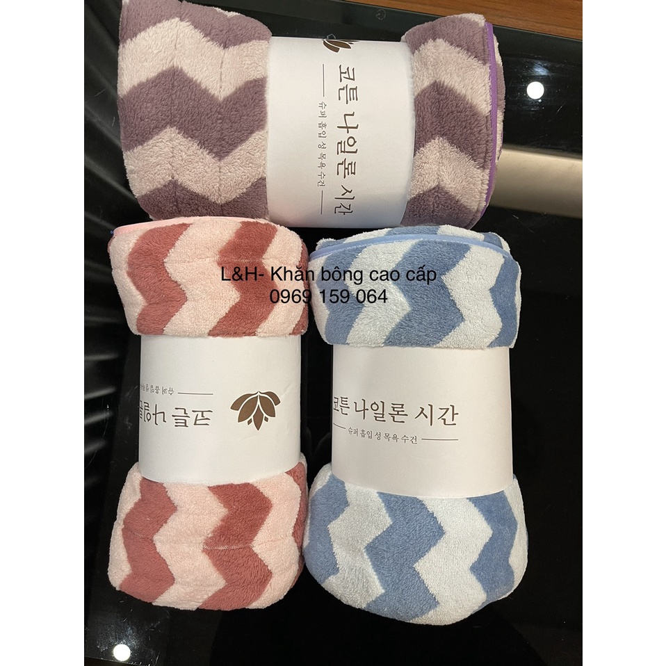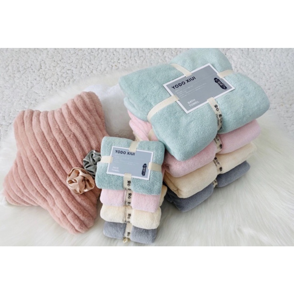Set 2 Khăn Tắm Lông cừu cao cấp, Trơn, Xuất Hàn cỡ Lớn Siêu mềm mịn Thấm hút nước tốt
