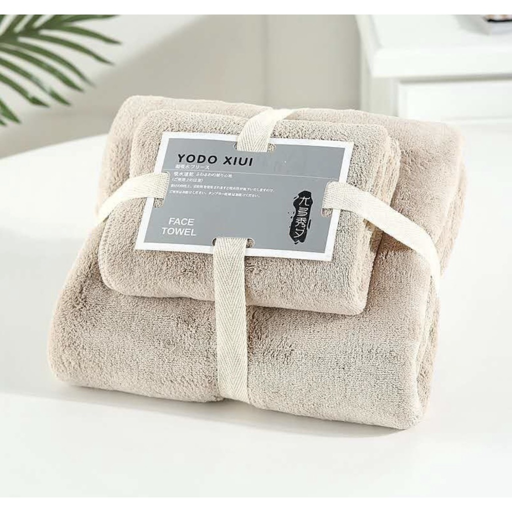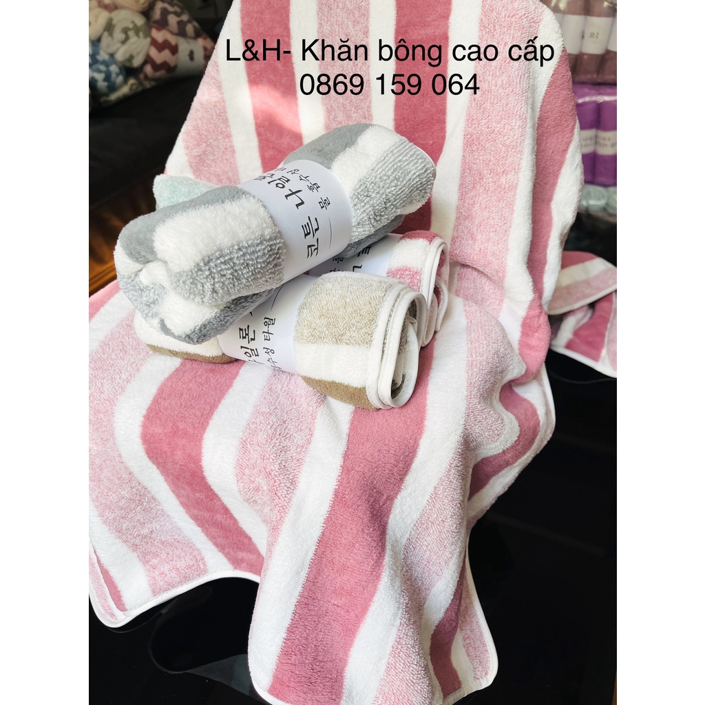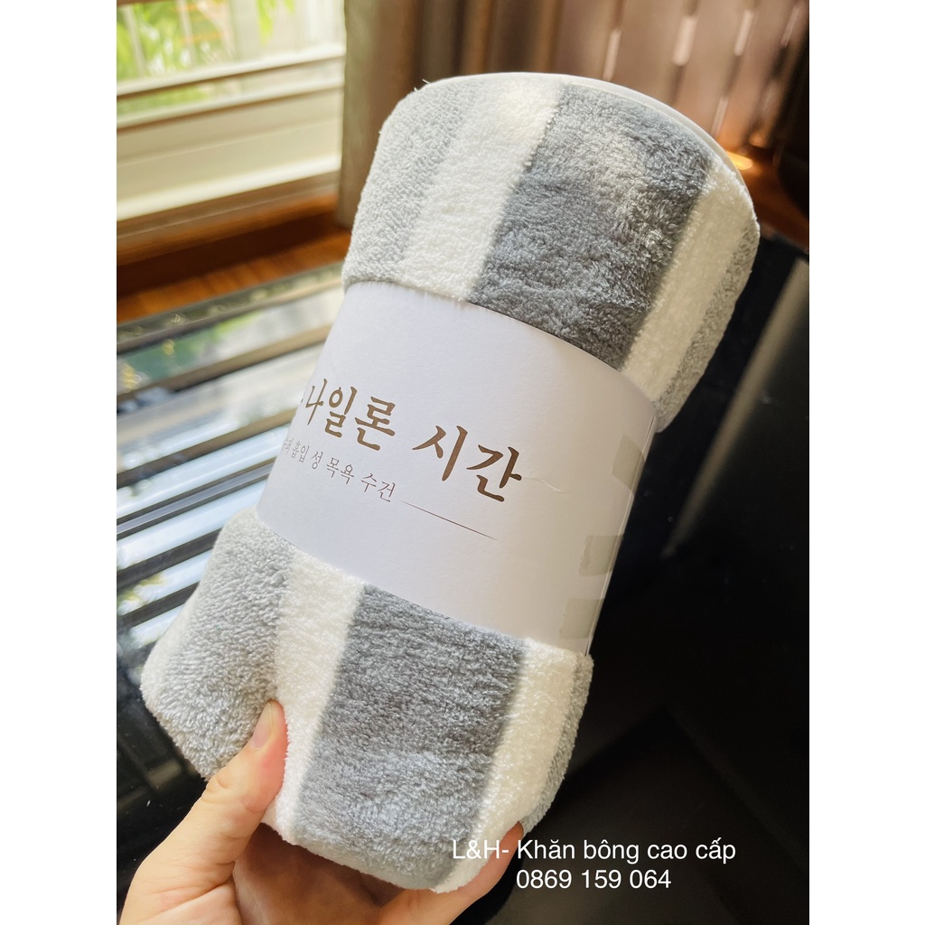 Set 2 Khăn Tắm Lông cừu cao cấp, Trơn, Xuất Hàn cỡ Lớn Siêu mềm mịn Thấm hút nước tốt