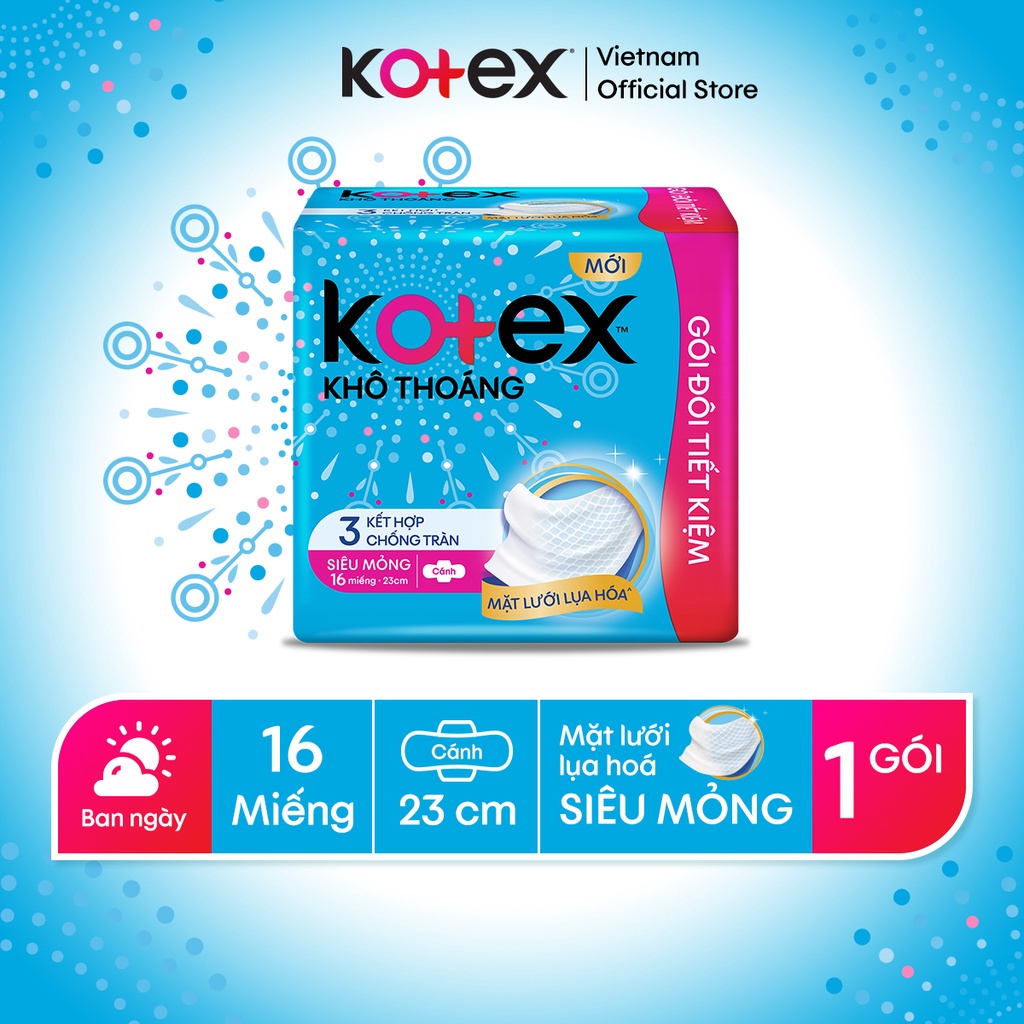 Băng Vệ Sinh Kotex Khô thoáng Siêu Mỏng Cánh 16miếng/gói