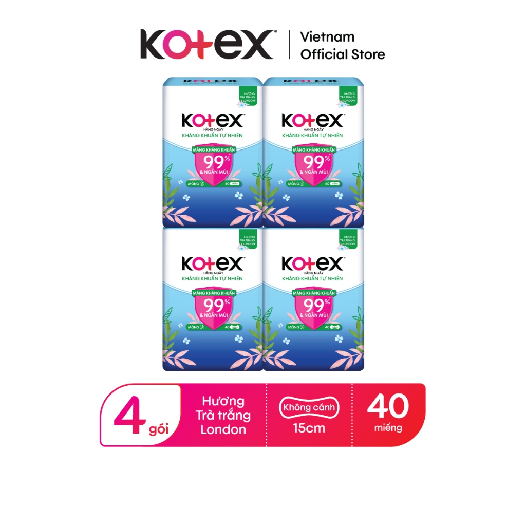 Combo 4 Gói Băng Vệ Sinh Hằng Ngày Kotex Kháng Khuẩn & Khử Mùi 15cm 40 Miếng/Gói