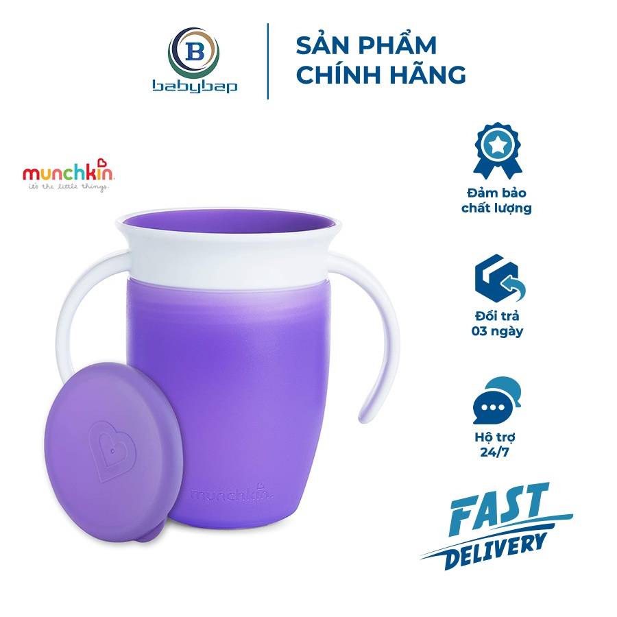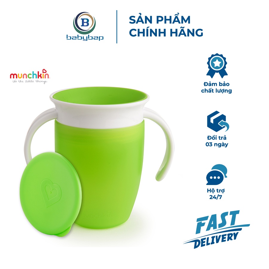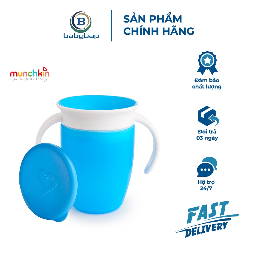 Cốc Tập Uống 360 Độ Chống Đổ Munchkin Có Nắp (207ml) Phù Hợp Với Trẻ Từ 6 Tháng Tuổi