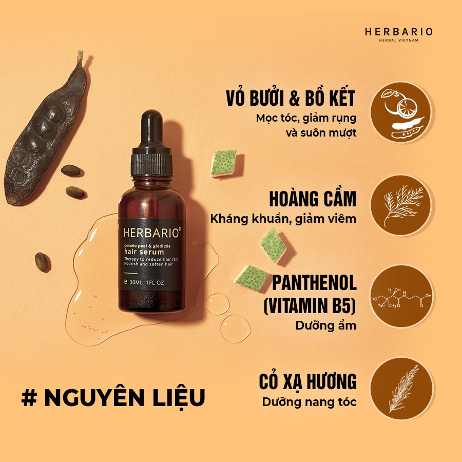 Bộ 2 chai xịt dưỡng tóc Herbario 100ml và 1 serum giúp mọc tóc vỏ bưởi, bồ kết Herbario 30ml