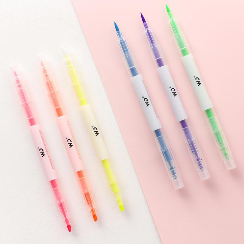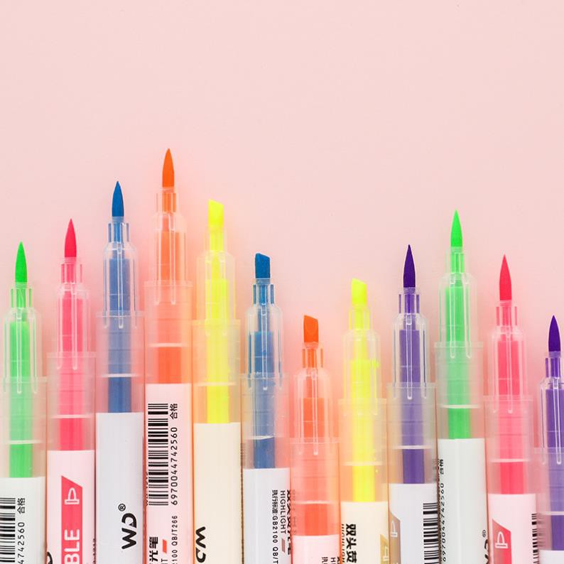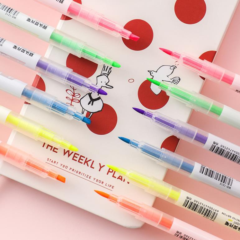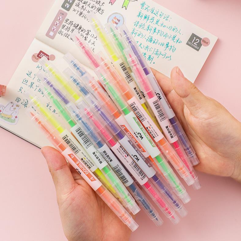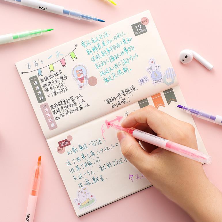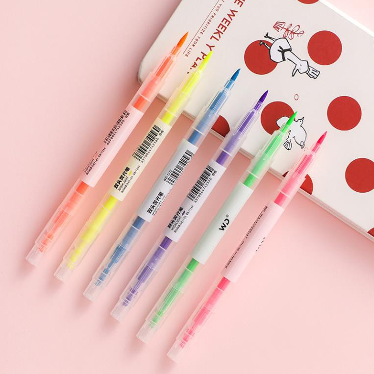 Bút highlight pastel dạ quang 2 đầu Lyawn, bút đánh dấu nhớ dòng cute nhiều màu marker dễ thương BN6